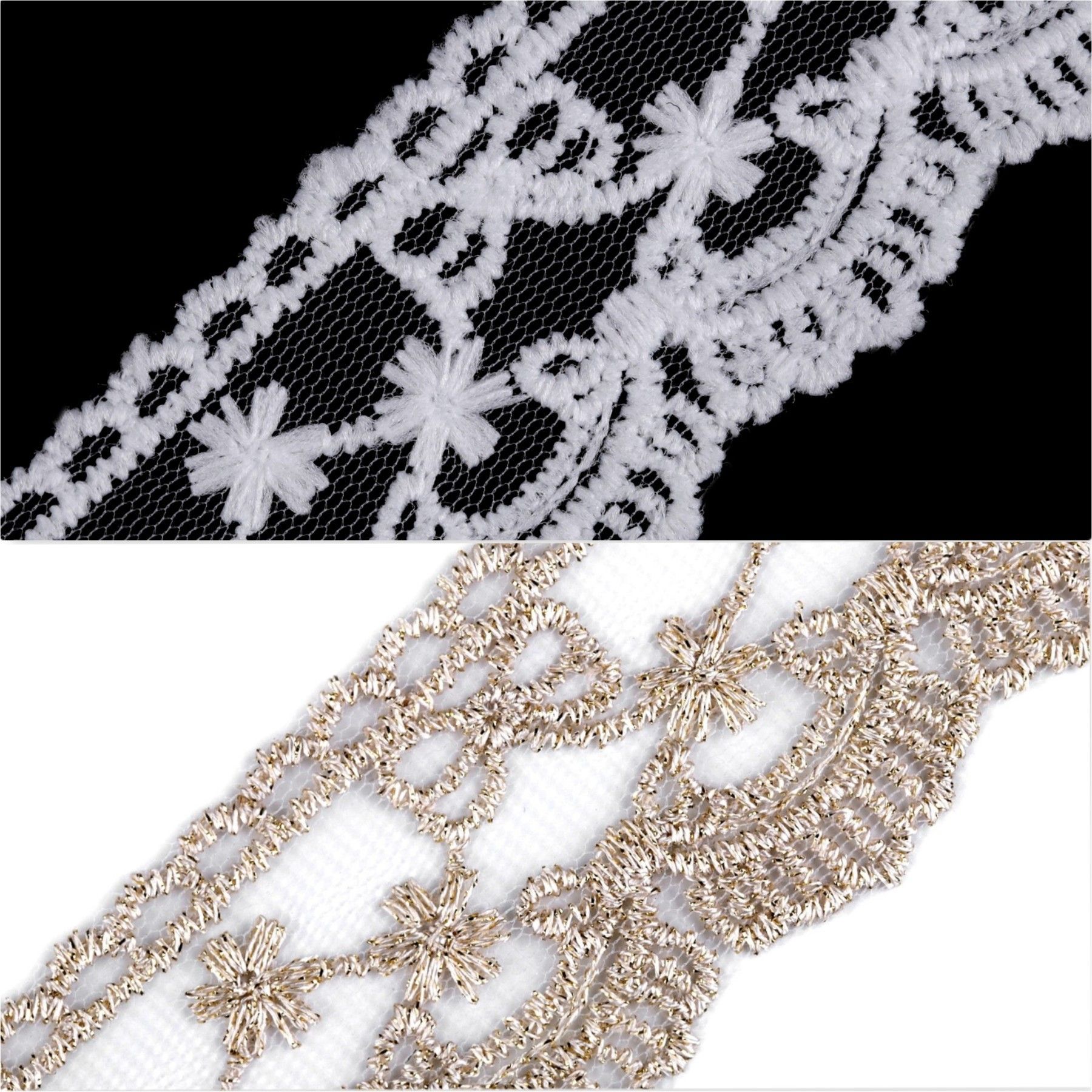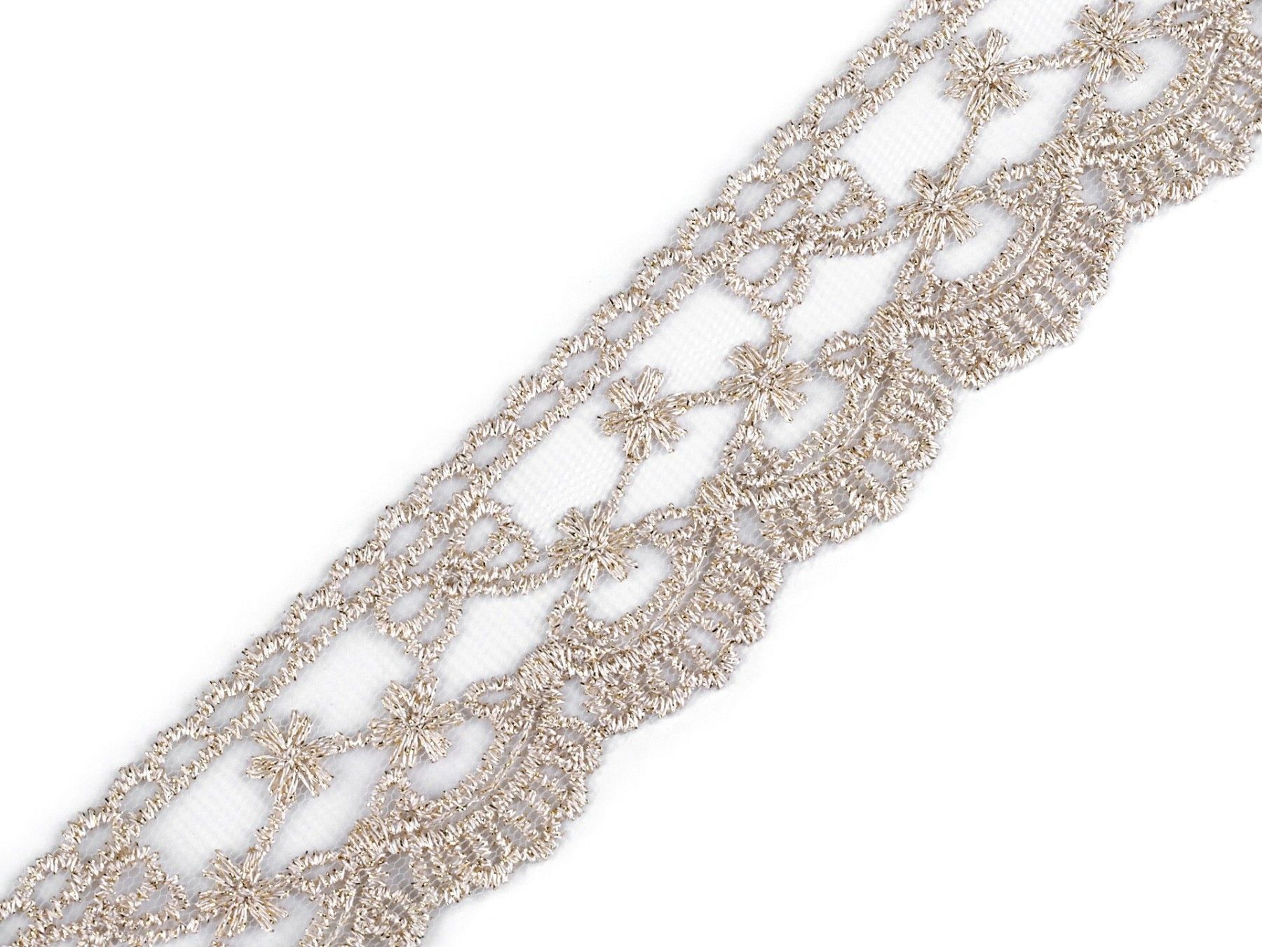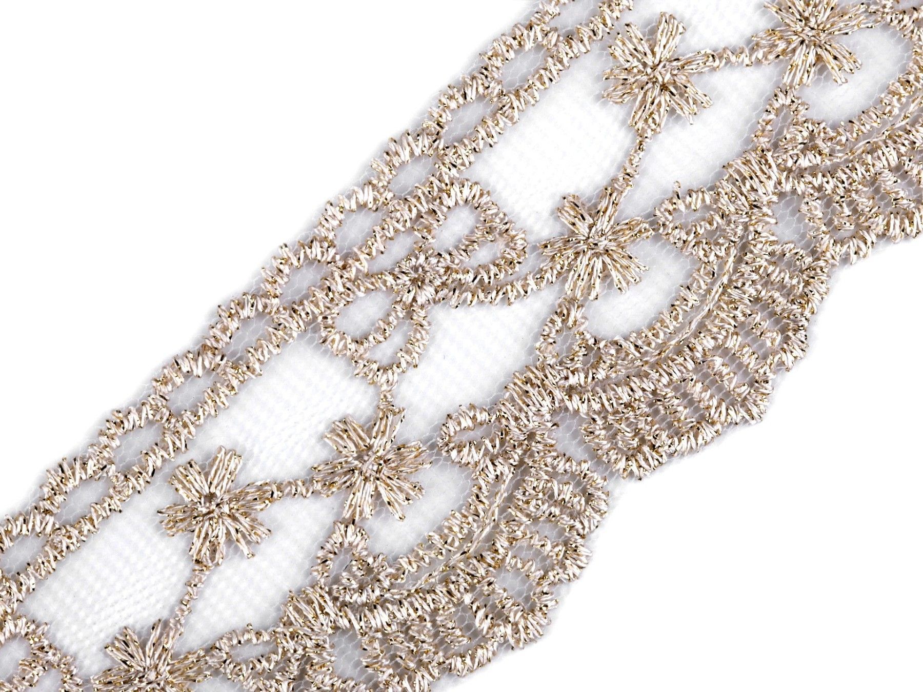 Spitzenborte, Tüllspitze,40 mm breit, bestickt, Hochzeit, beige/ gold, weiß