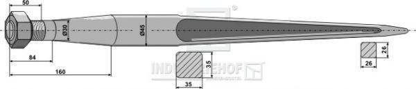 Spitzer Zinken mit konischer Mutter / L 1400 mm M30x2 Profil/Vierkant
