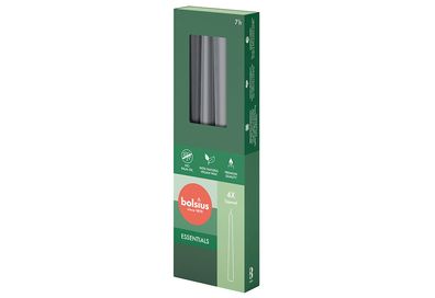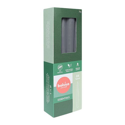 Spitzkerzen, Stürmisches Grau, Bolsius Essentials, 24/245 mm, Brenndauer ca. 7h, 8 St