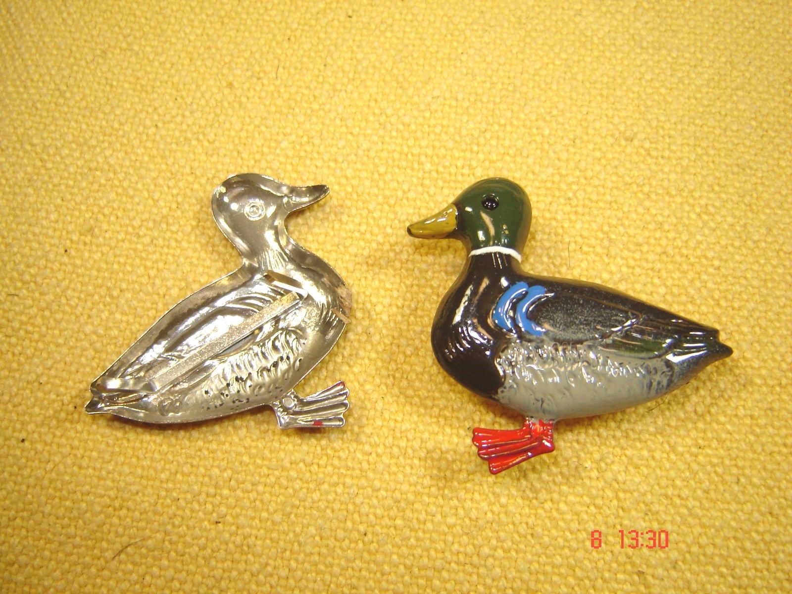 . sehr schöner Splint für Trachtenhut , Gürtel , Ledergürtel , Tasche und andere feste Stoffe ausgezeichnet verarbeitet , aus deutscher Herstellung große Wildente , blau grün liebevoll handbemalt Länge ca 4 cm , Höhe 3,4 cm mit 2 Splinte hinten , zum Befestigen . Bitte sehen Sie sich hier alle meine