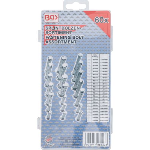 BGS Splintbolzen Set, Sicherungsbolzen Sortiment, Steckbolzen Splinte Bolzen 60 tlg