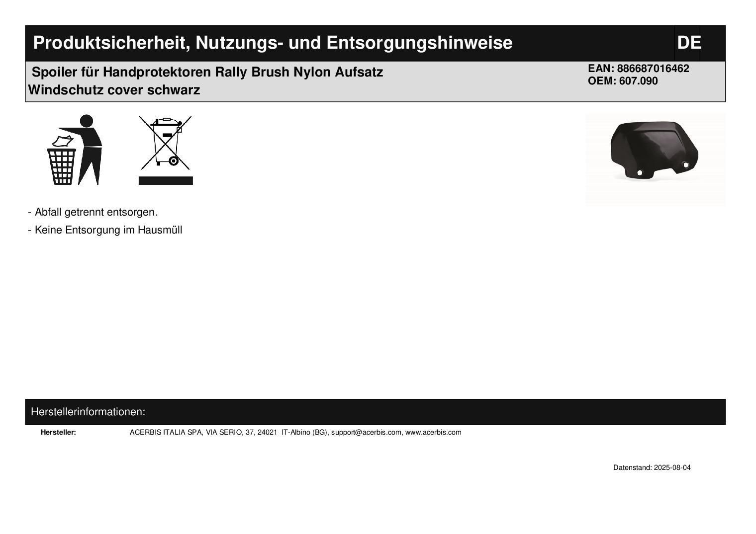 Acerbis Spoiler für Handprotektoren Rally Brush Nylon Aufsatz Windschutz cover schwarz