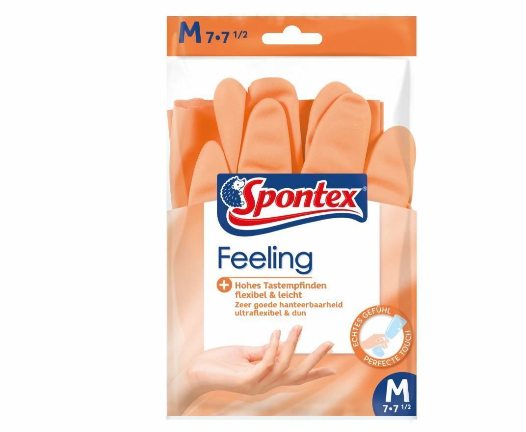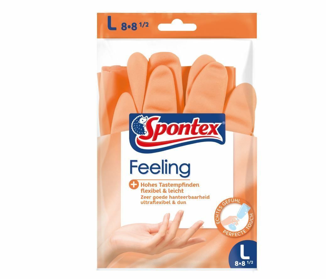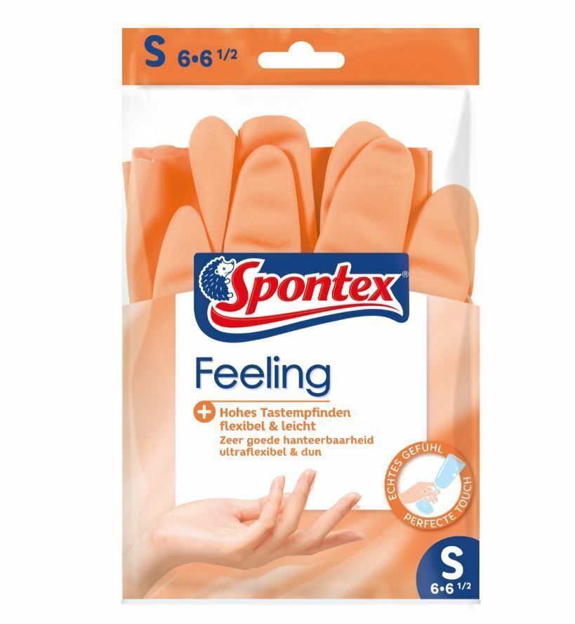 Spontex Feeling Handschuh Haushaltshandschuh für feinfühlige Arbeiten Highlights Extrem hohes Tastempfinden Super sanftes Tragegefühl durch Flex - Comfort Innen-Beschichtung Geschmeidiger, feiner und leichter durch optimierte Wandstärke Für alle feinfühligen Putz und Pflegearbeiten im Haushalt Auf a