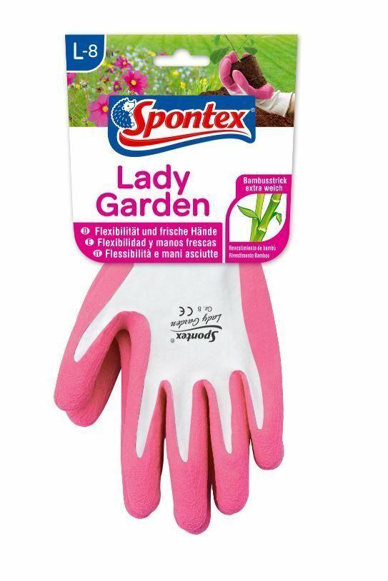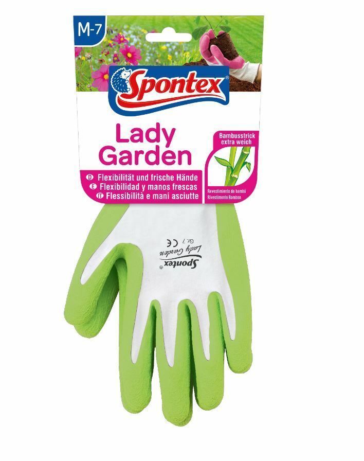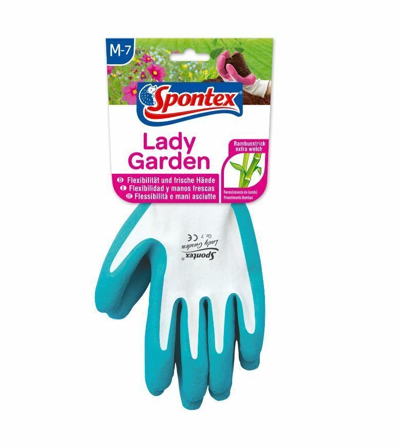 Spontex Handschuh Lady Garden M it extra weichem Strick aus Bambus - Viskosefasern Modischer Handschuh für Ihre Gartenarbeiten Modischer Gartenhandschuh für die Frau Für feine Arbeiten im Garten Extra weicher Strick aus Bambus-Viskosefasern für hohen Tragekomfort Mit Latexbeschäumung für sicheren Gr