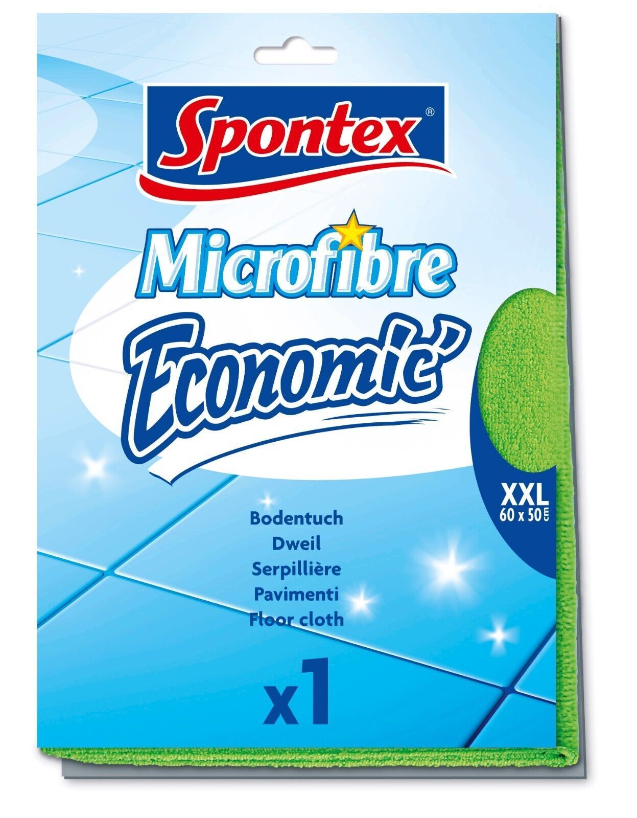Spontex Microfibre Economic Bodentuch XXL 60 x 50 cm S uper saugstark und ideal für alle glatten Oberflächen Highlights: Aus weichem Mikrofasermaterial Für alle glatten Oberflächen geeignet Extrem strapazierfähig und super saugstark Kraftvolle Reinigung – ohne Chemie,höchste Fettlösekraft Waschbar b