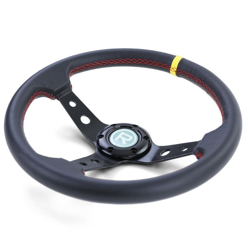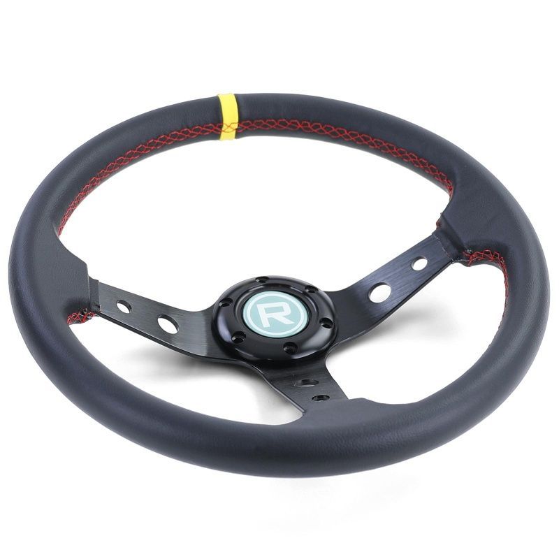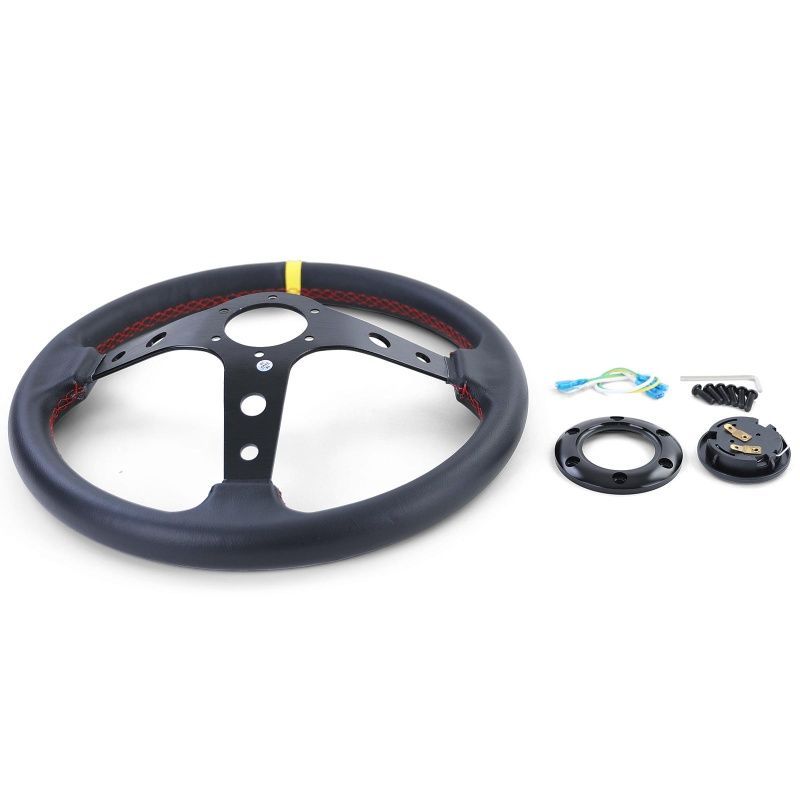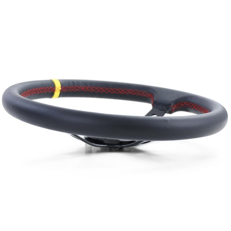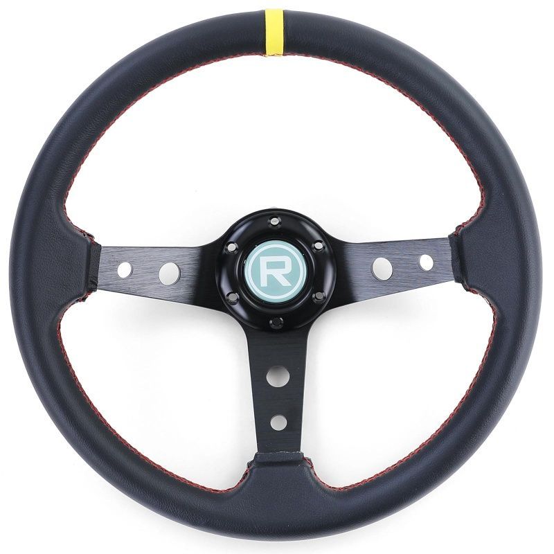 Sportlenkrad geschüsselt Leder Schwarz mit Gelber 12-Uhr-Markierung, Ø 350 mm