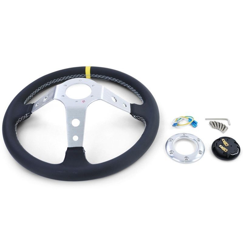 Sportlenkrad geschüsselt TYP 2 Echt Leder Alu Schwarz 350mm für Momo Sparco