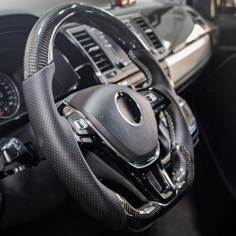 • Sportlenkrad mit Echt Carbon und Leder gelocht für VW T6.1 mit Schaltwippen