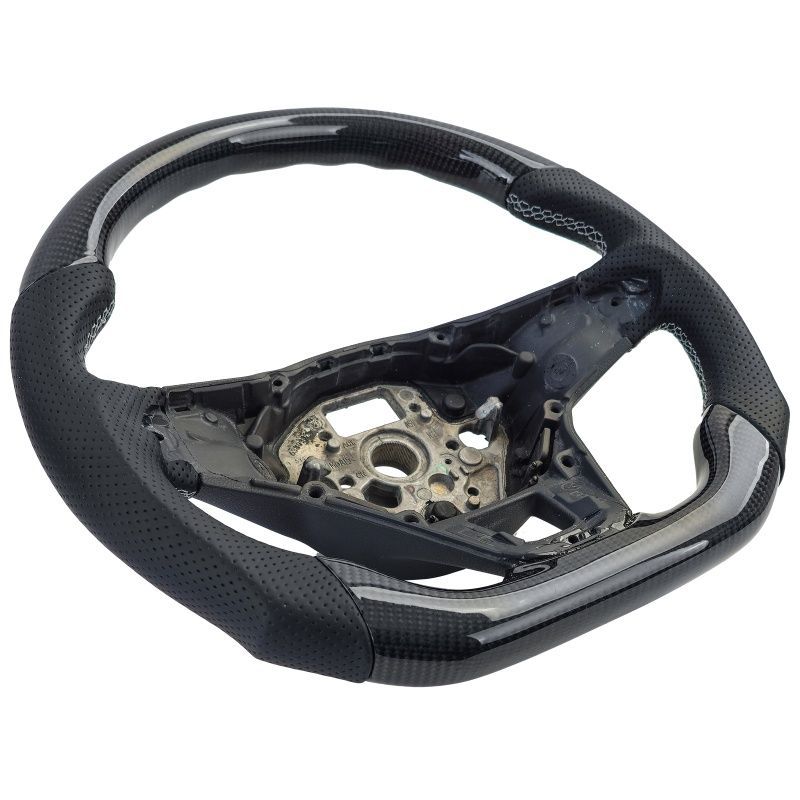 Sportlenkrad mit Echt Carbon und Leder gelocht für VW Golf 8 mit Schaltwippen