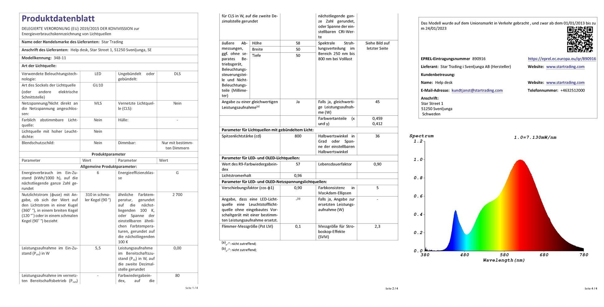 Spotlight LED Leuchtmittel COB GU10 230V 350lm 5,5W 2700K dimmbar 348-11