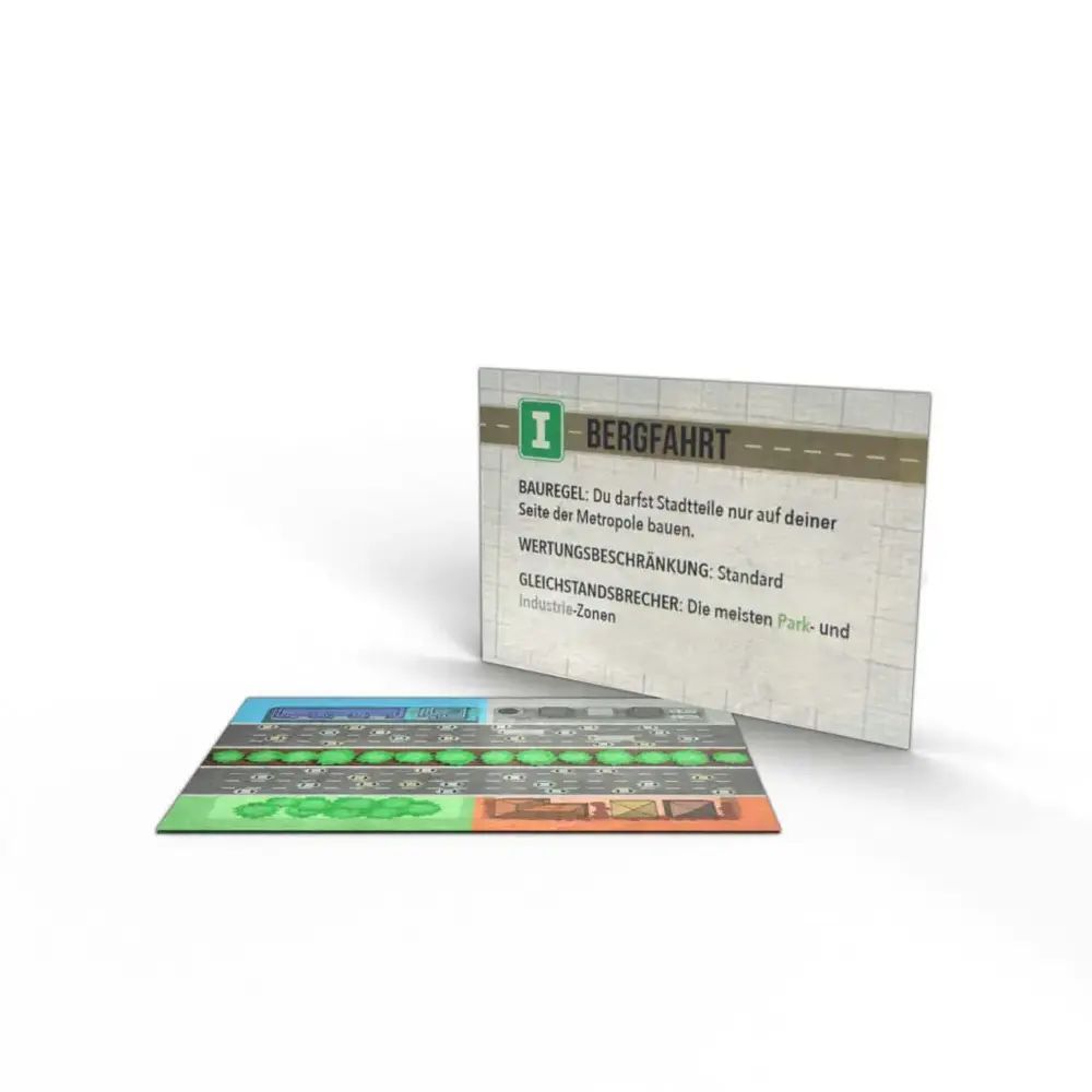 Eine fiese Fernstraße teilt die aufkeimende Metropole in zwei Teile: Jetzt könnt ihr sogar kompetitiv spielen – bis zu zwei Bürgermeister können jetzt um die schönste Stadthälfte buhlen. Damit alles rechtens zugeht, müsst ihr aber jeweils brav auf eurer Seite der Stadt bleiben! ACHTUNG: Zum Spielen
