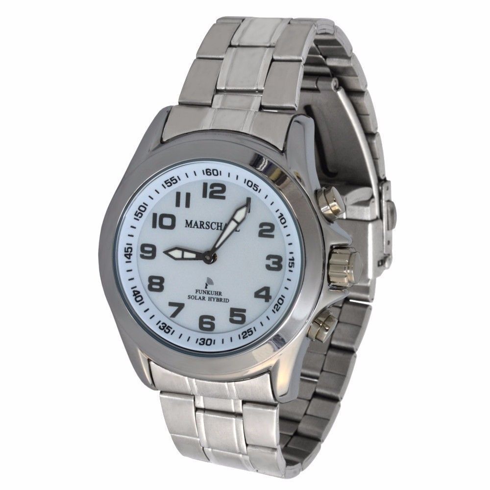Sprechende Herren Funk Solar Hybrid Quarzuhr 1146W Edelstahlarmband verstellbar