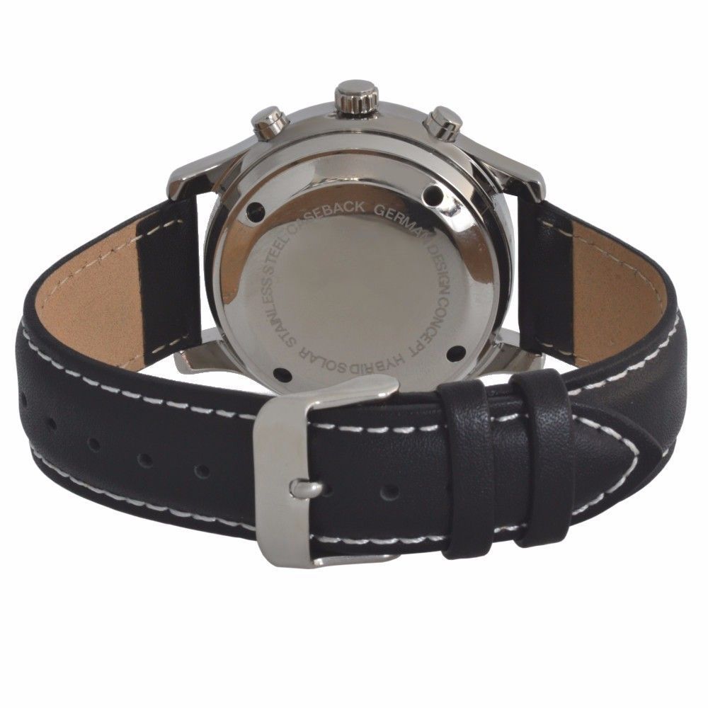 Sprechende Unisex Funk Solar Hybrid Quarzuhr 1148SL Echt-Leder Armband Edelstahl