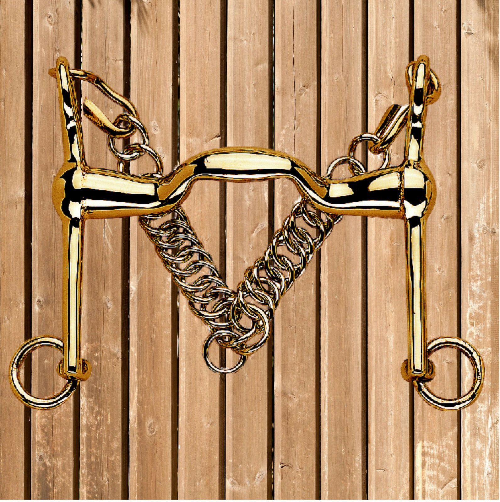 Sprenger KK Dressurkandare, Aurigan (42280) Die KK-Dressurkandare ist der Anatomie des Pferdemauls nachempfunden. Durch die Neigung des Mundstücks um 45 Grad nach vorne wird Gaumendruck vermieden. Bei annehmenden Zügelhilfen verteilt sich der Druck gleichmäßig über die gesamte Zungenbreite. Zugelass