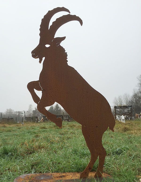 Springender Steinbock H113cm Bergziege Ziege Rost Edelrost Rostfigur Gartendeko