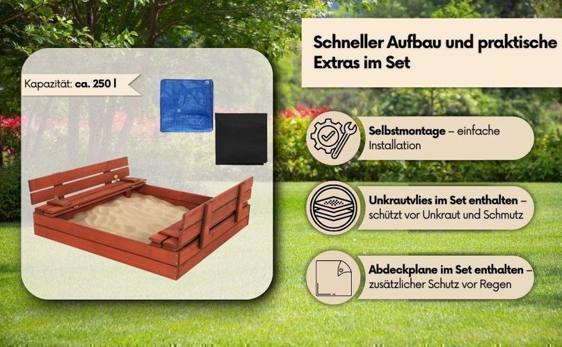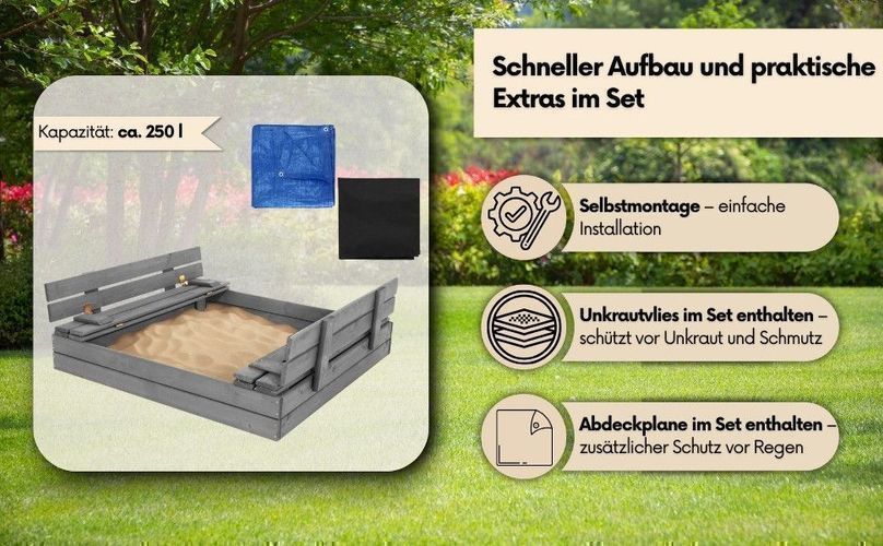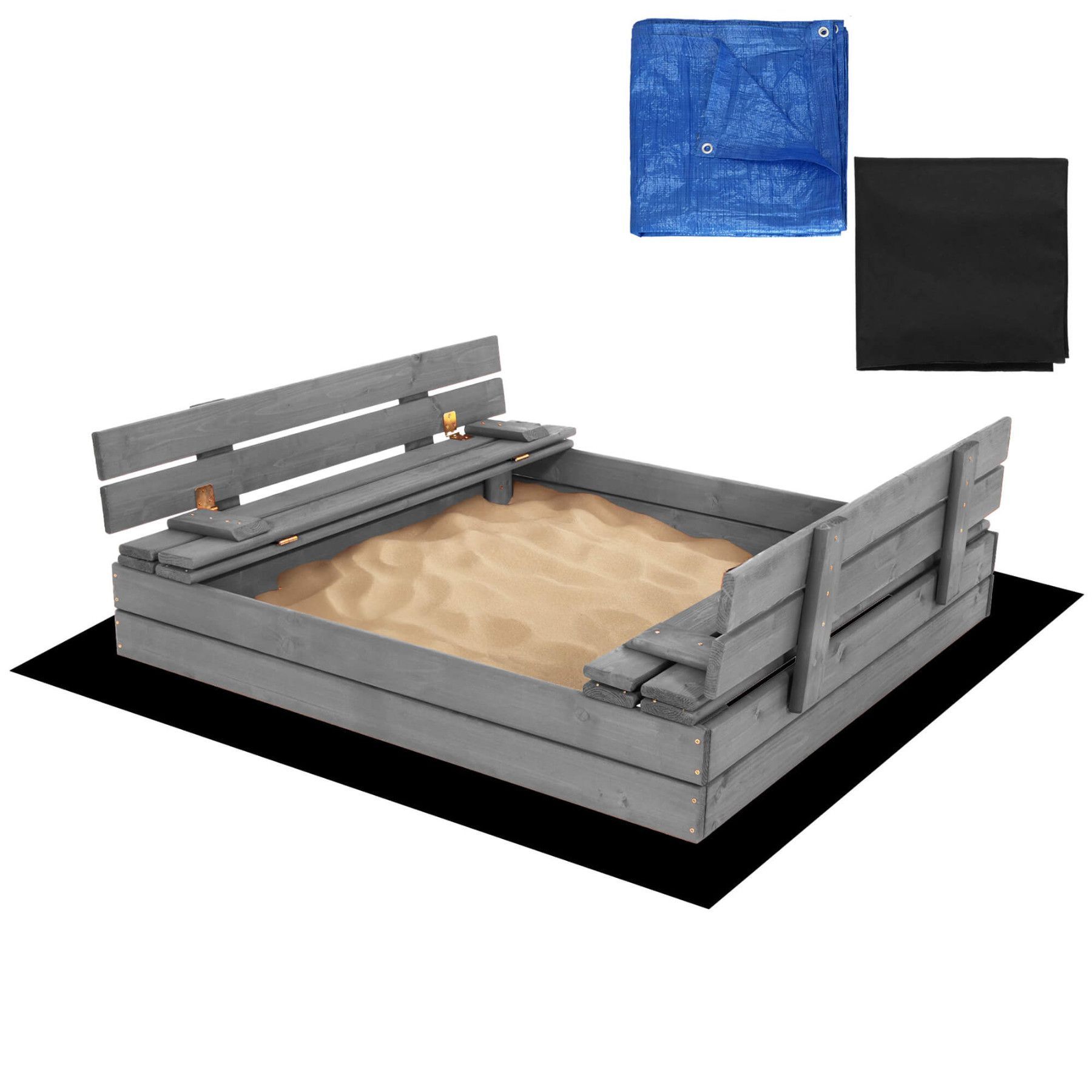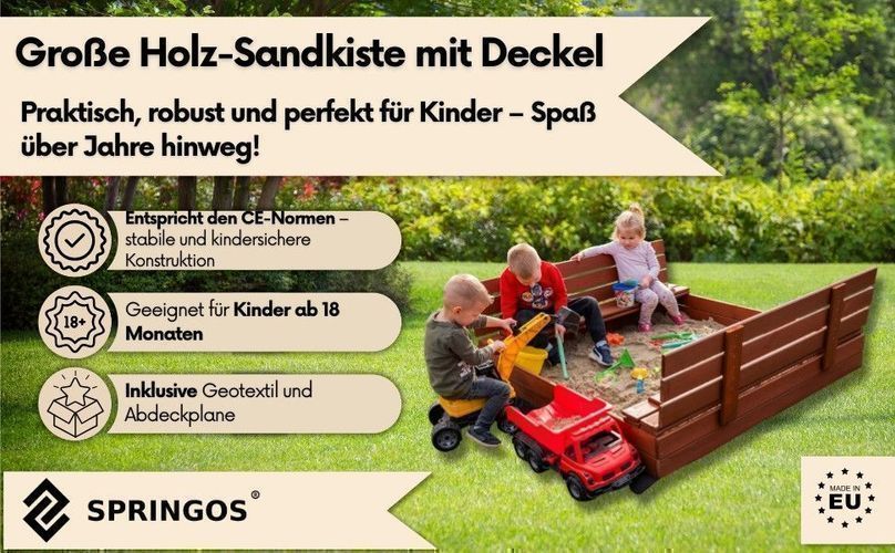 Springos® Premium Sandkasten Sandbox mit Sitzbänken Deckel Spielzeug Imprägniert Holz