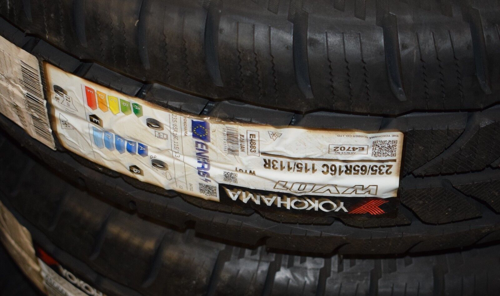 Original Mercedes Komplettradsatz Sprinter w910 Felgen: A0014604802, 6,5Jx16H2 ET62 Arktikweiss Reifen: YOKOHAMA BlueEarth Winter 235 65 115 113R Profiltiefe: neu Baujahr 2022 minimale Lagerspuren können vorhanden sein
