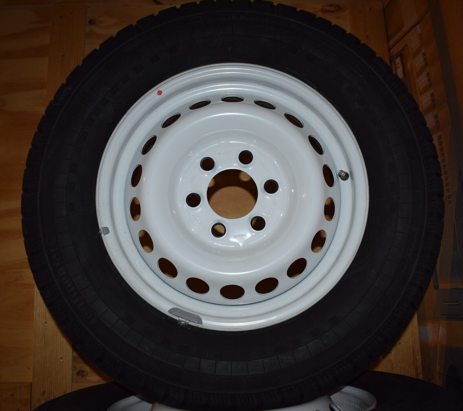 Original Mercedes Komplettradsatz Sprinter w910 Felgen: A0014604802, 6,5Jx16H2 ET62 Arktikweiss Reifen: Continental VancoFourSeason 2 235 65 16C 115 113R Profiltiefe: neu Baujahr 2022 minimale Lagerspuren können vorhanden sein