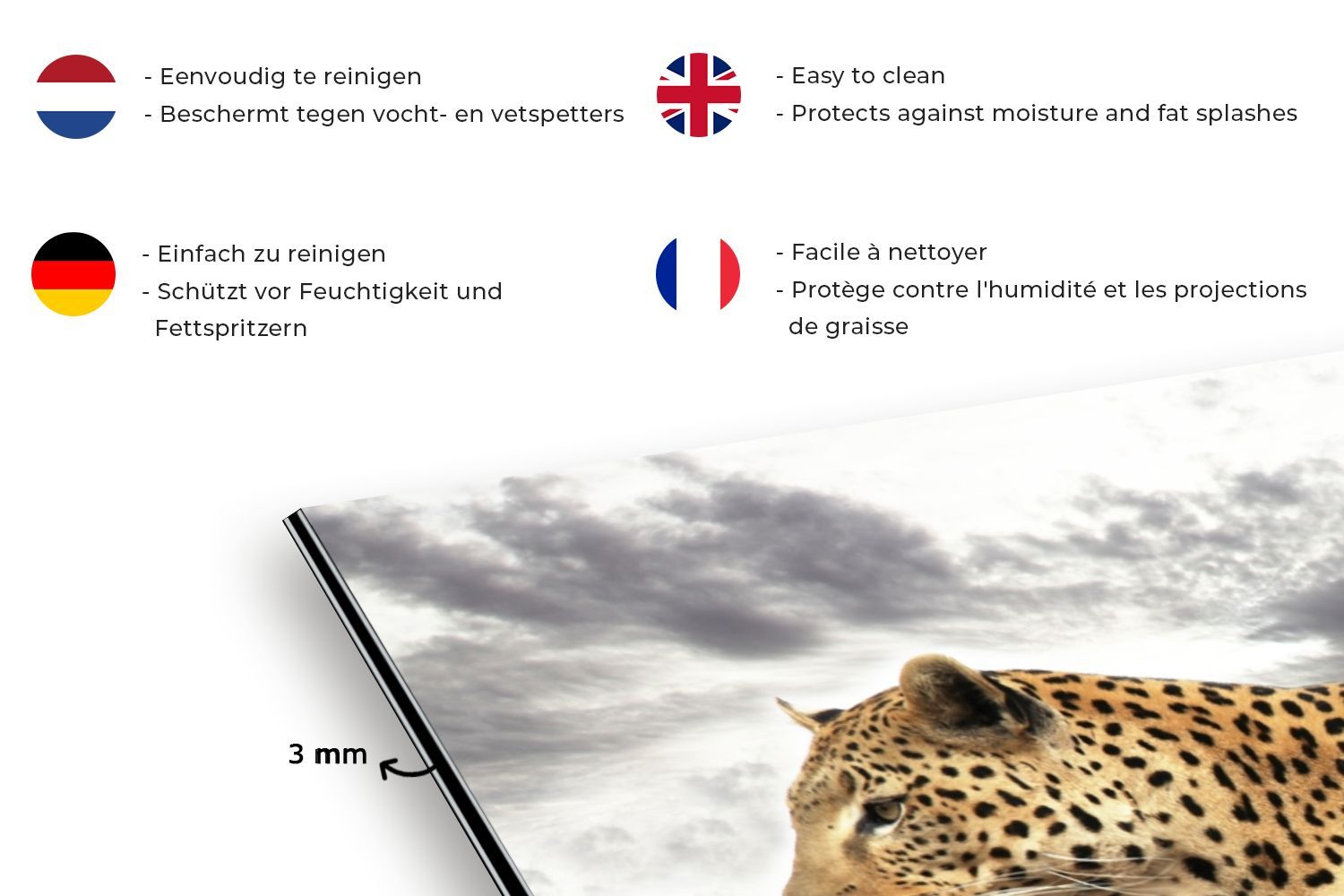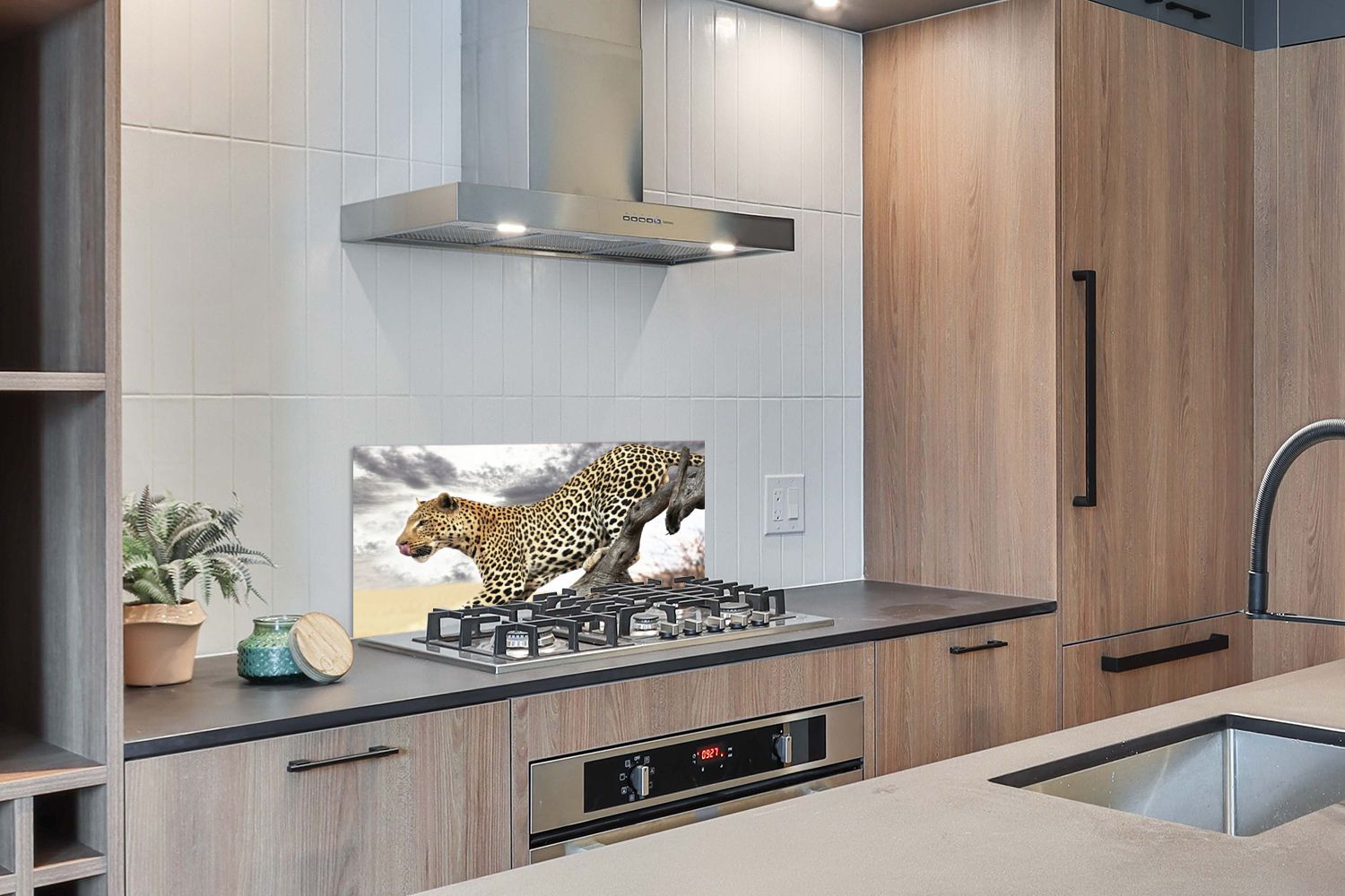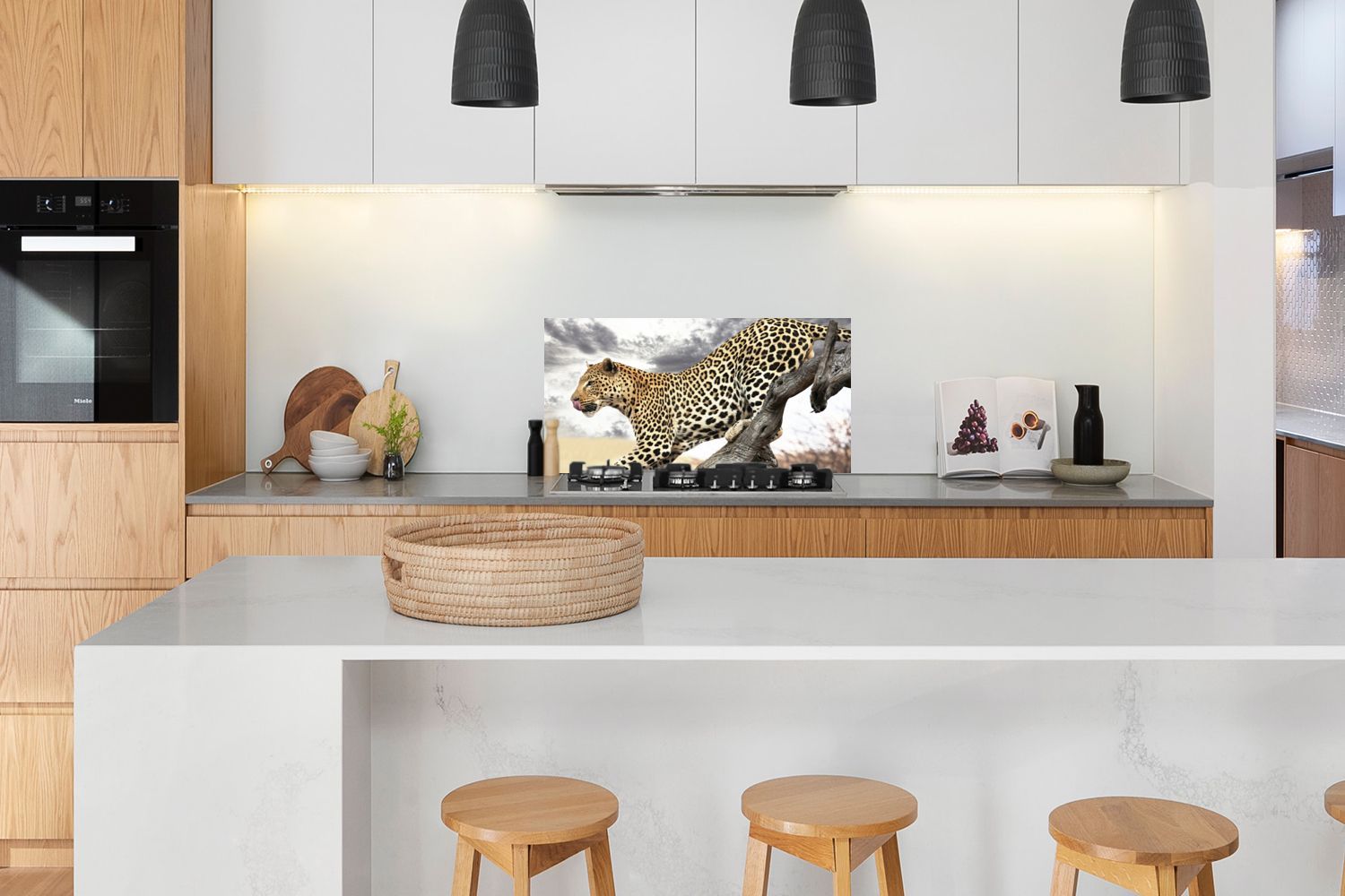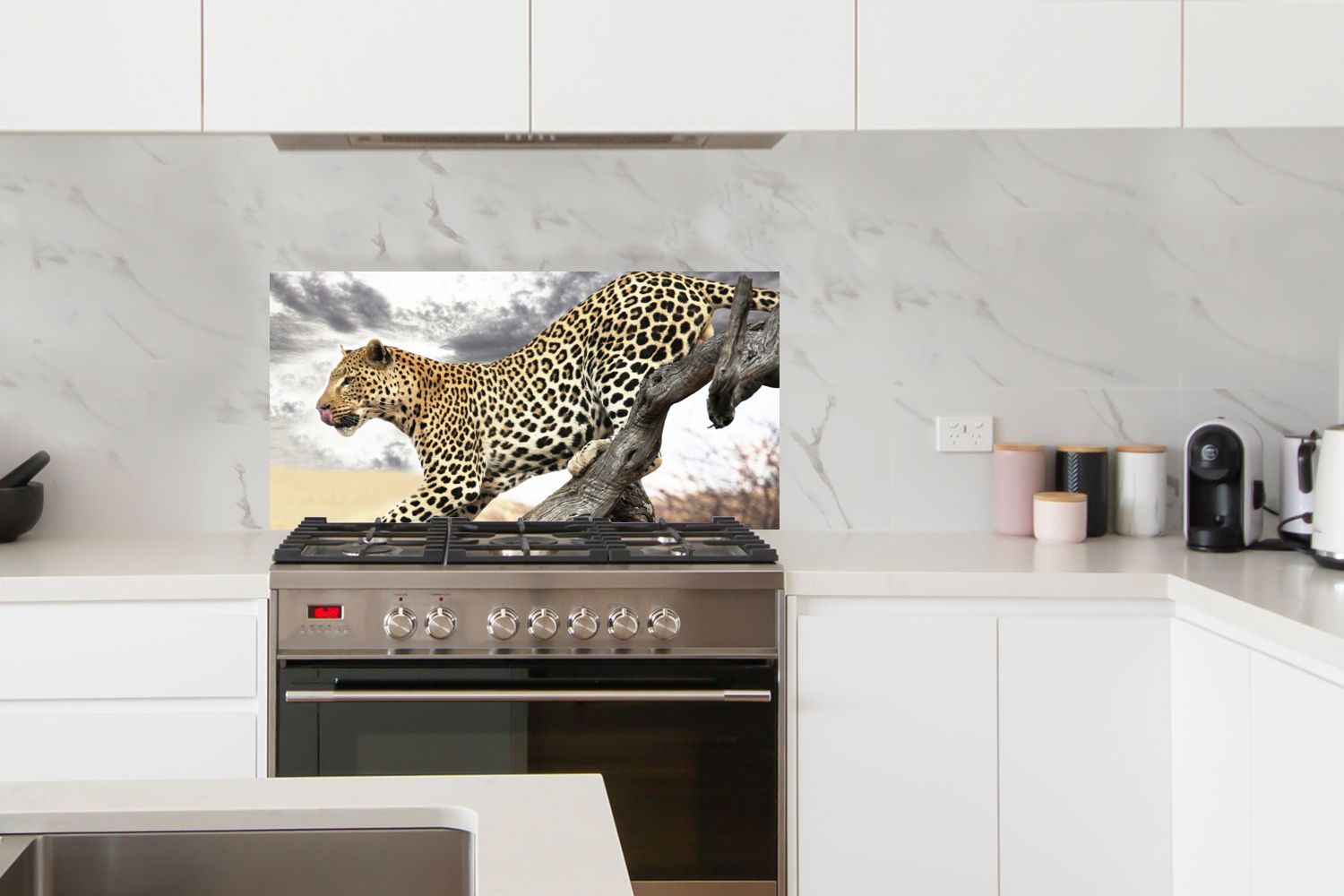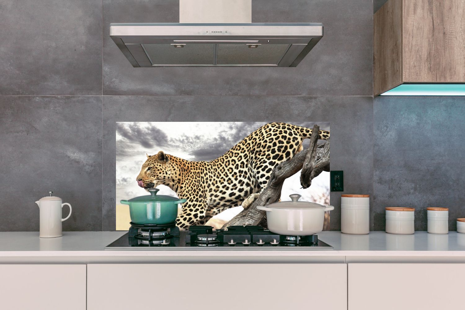 Spritzschutz Küche - 100x50 cm - Leopard - Wolken - Baum (Gr. 100x50 cm)