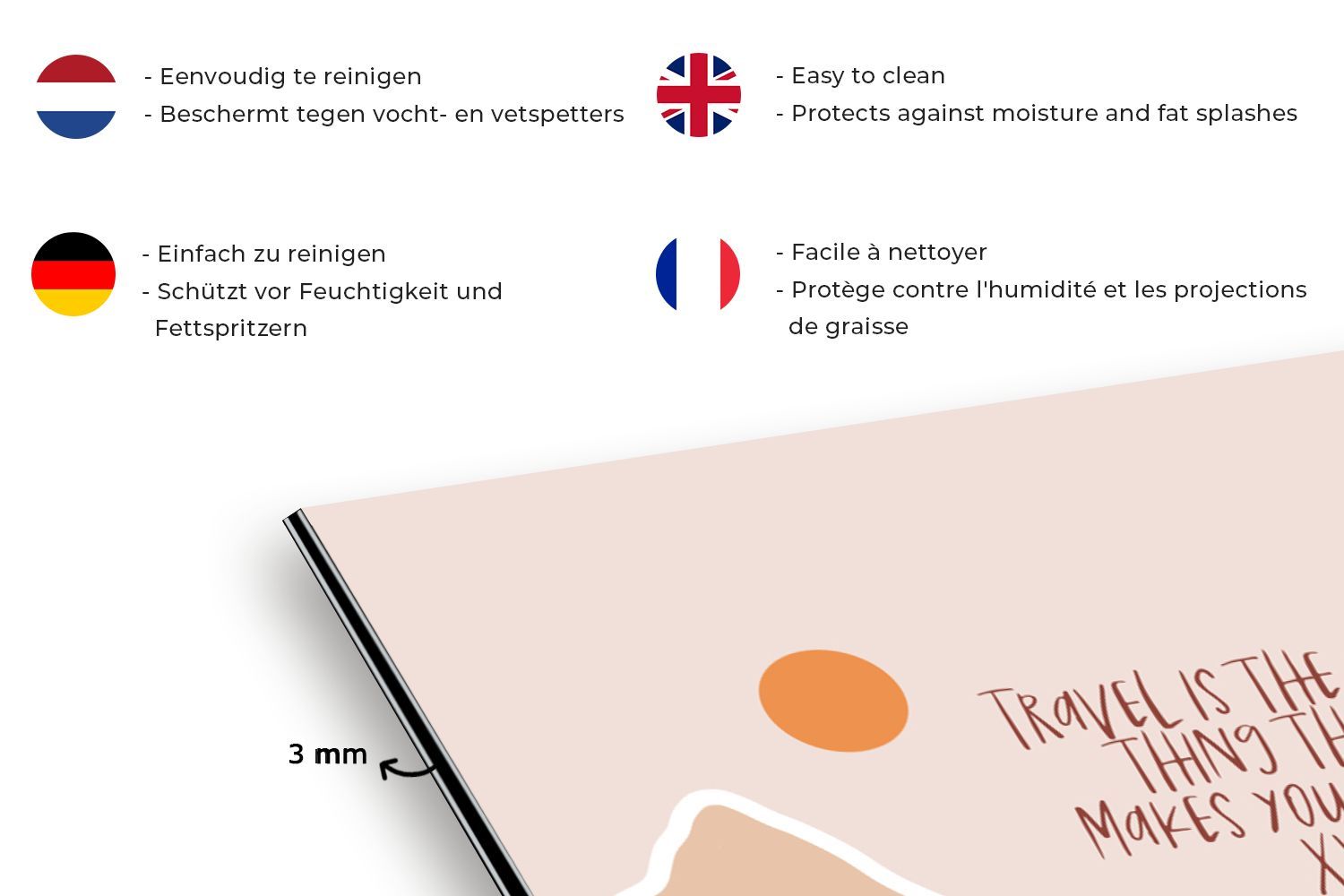 Spritzschutz Küche - 100x50 cm - Sprichwörter - Zitate - Reisen ist das Einzige, das