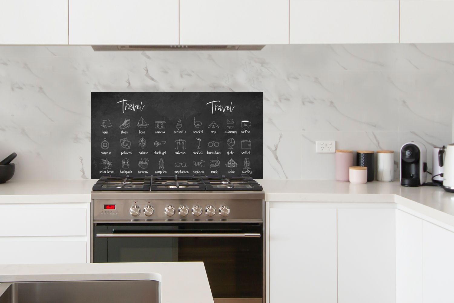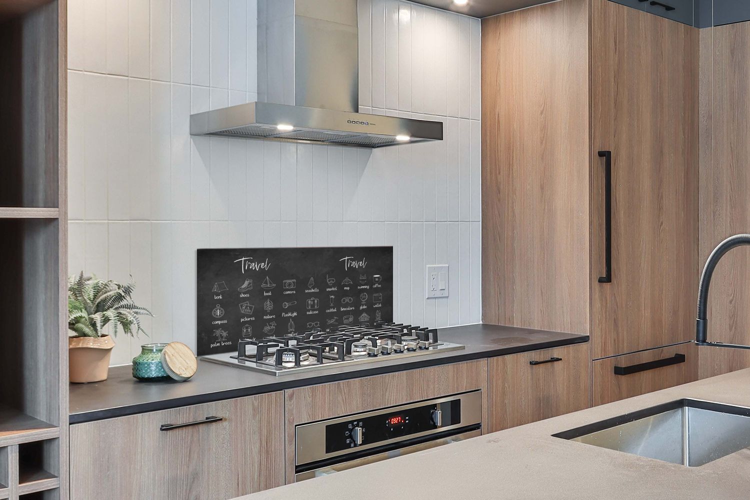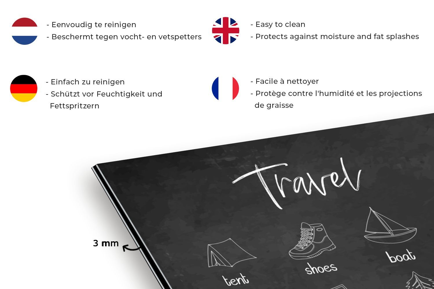 Spritzschutz Küche - 100x50 cm - Sprichwörter - Zitate - Reisen - Kaffee