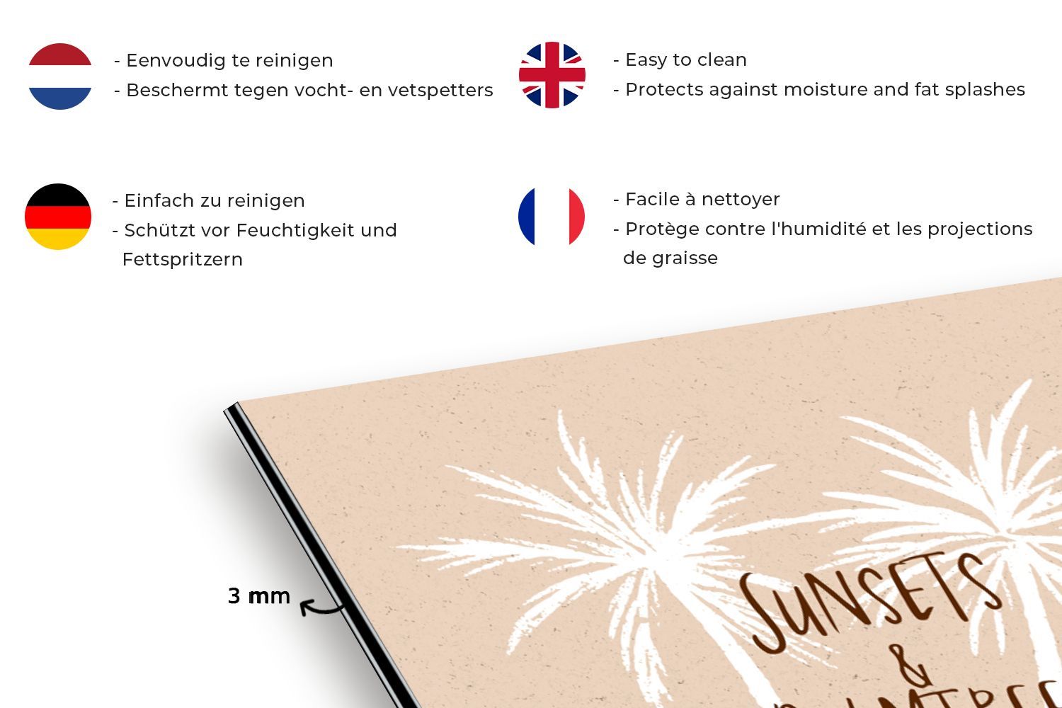 Spritzschutz Küche - 100x50 cm - Sprichwörter - Zitate - Sonnenuntergänge & Palme