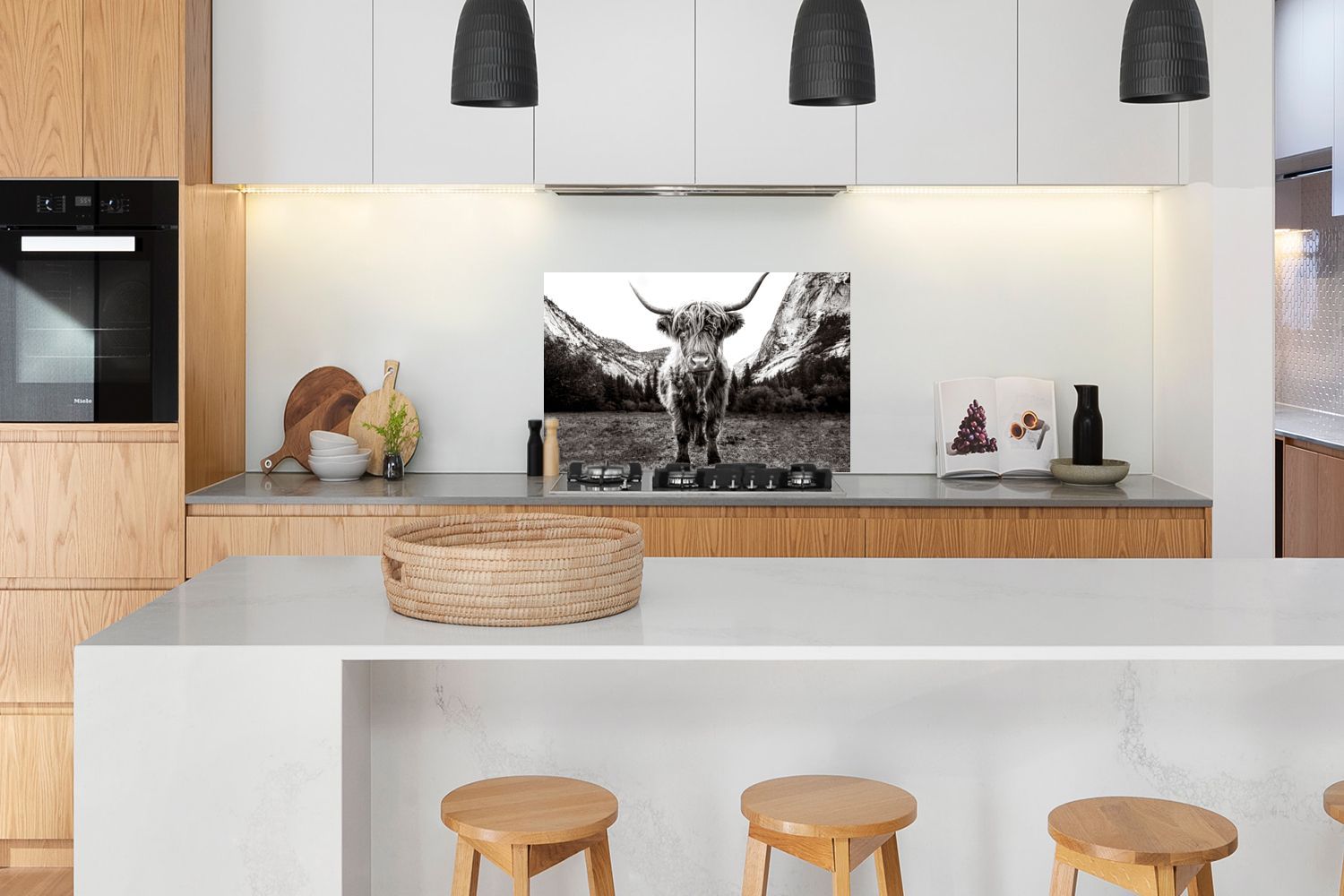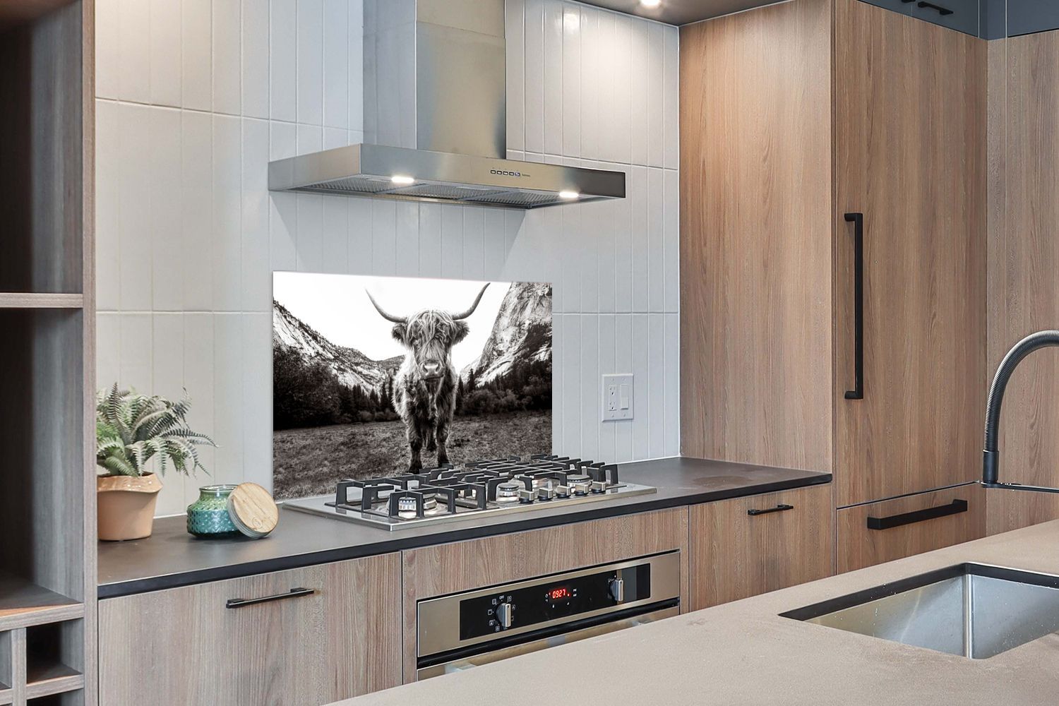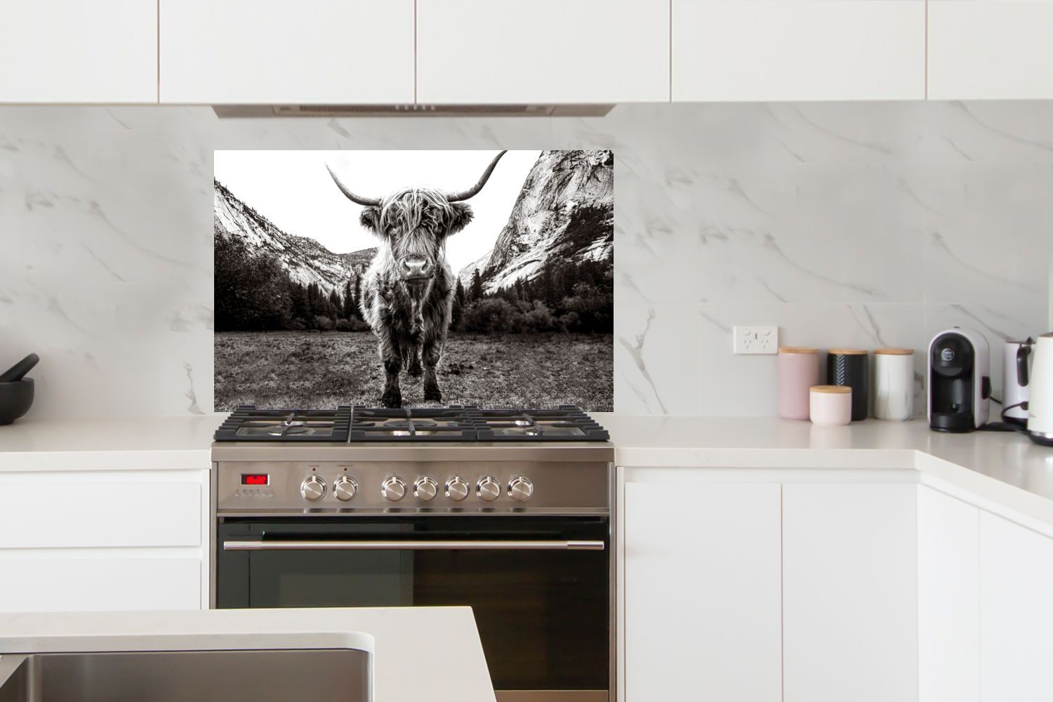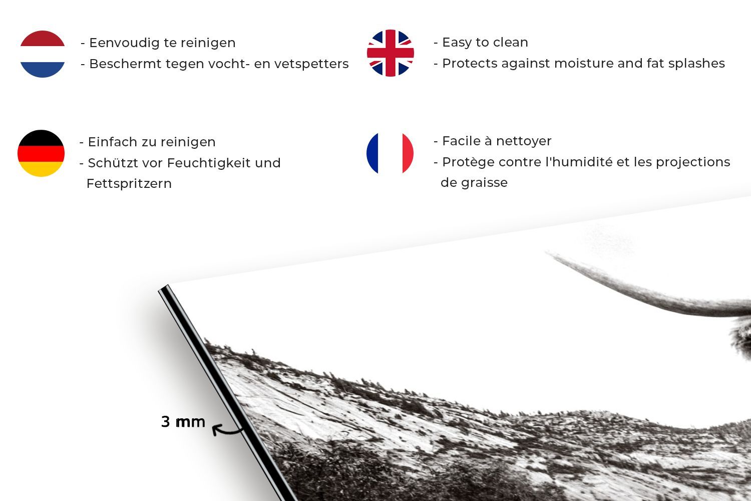 Spritzschutz Küchenrückwand - 100x65 cm Berg - Schwarz - Weiß - Schottischer Highland