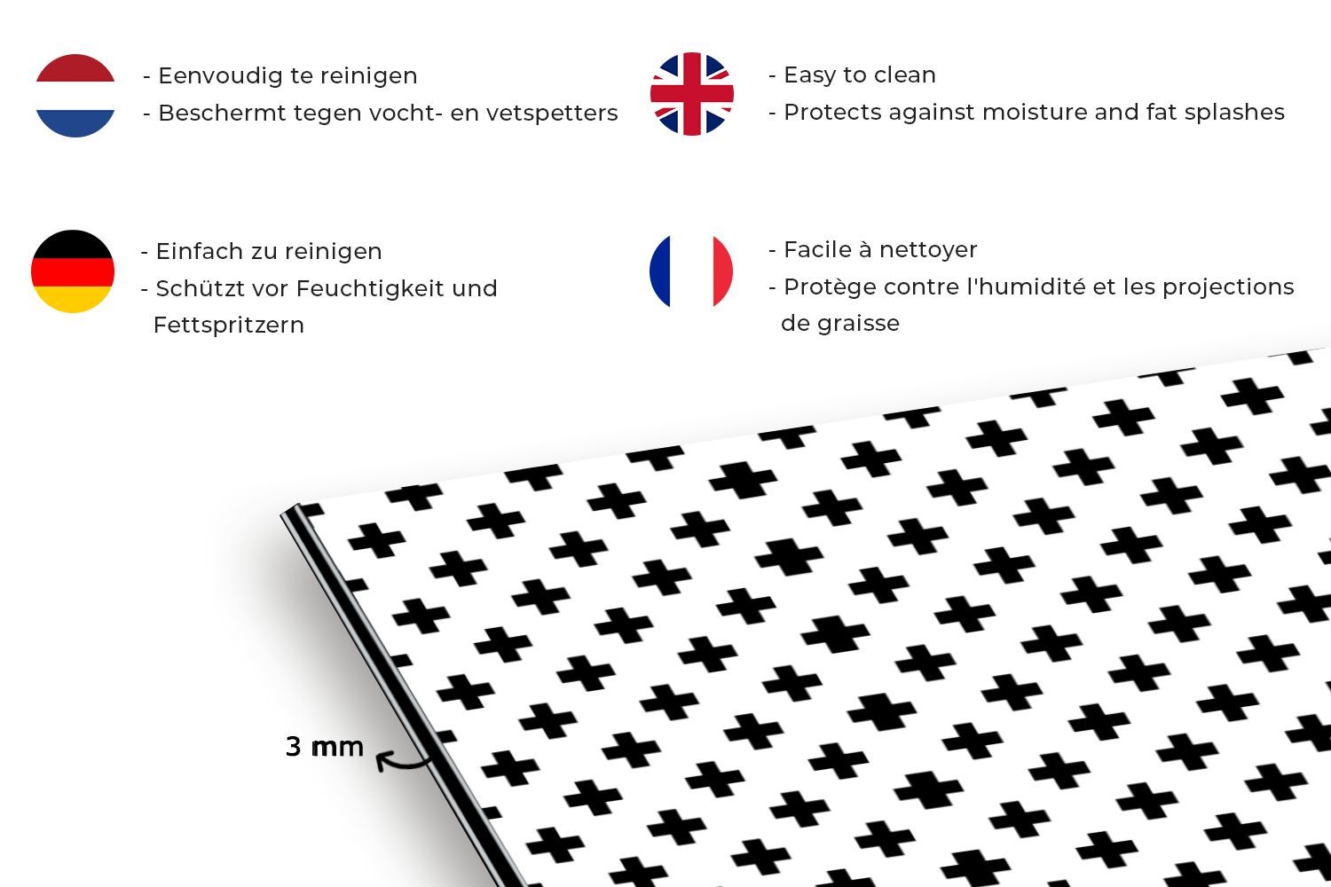 Spritzschutz Küchenrückwand - 100x65 cm Design - Linie - Muster - Schwarz - Weiß