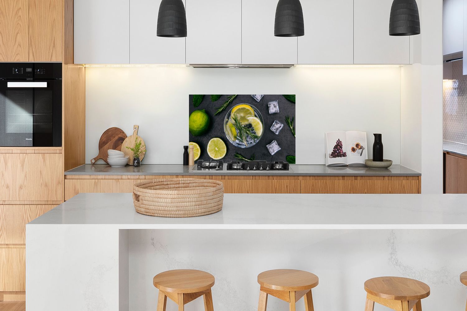 Spritzschutz Küchenrückwand - 100x65 cm Getränk - Obst - Becher - Zitrone