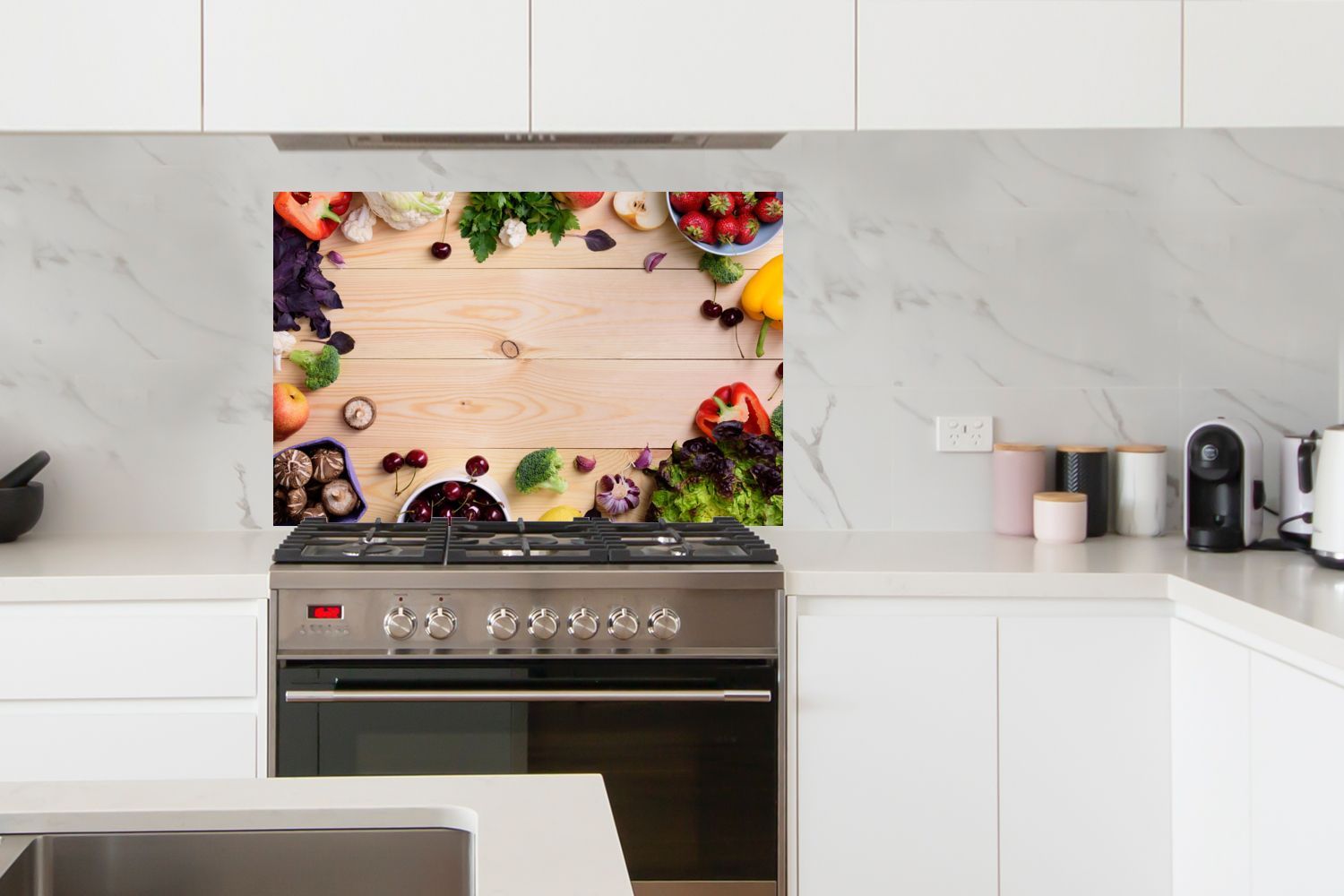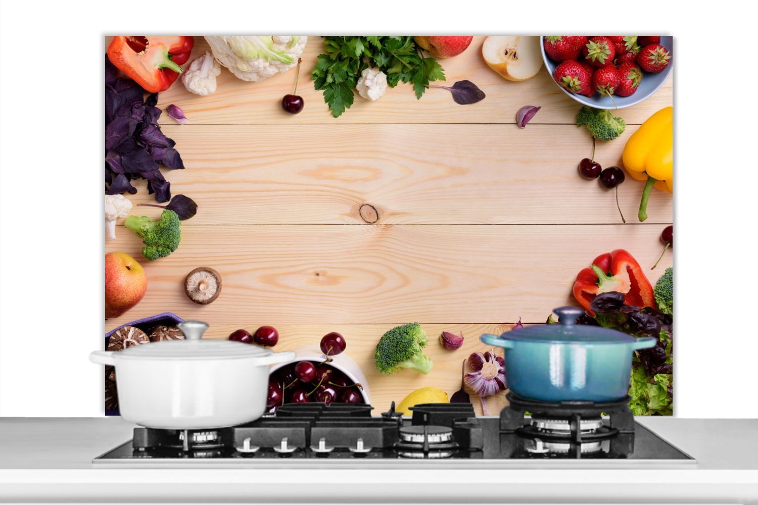 Spritzschutz Küchenrückwand - 100x65 cm Obst - Erdbeere - Paprika - Küche
