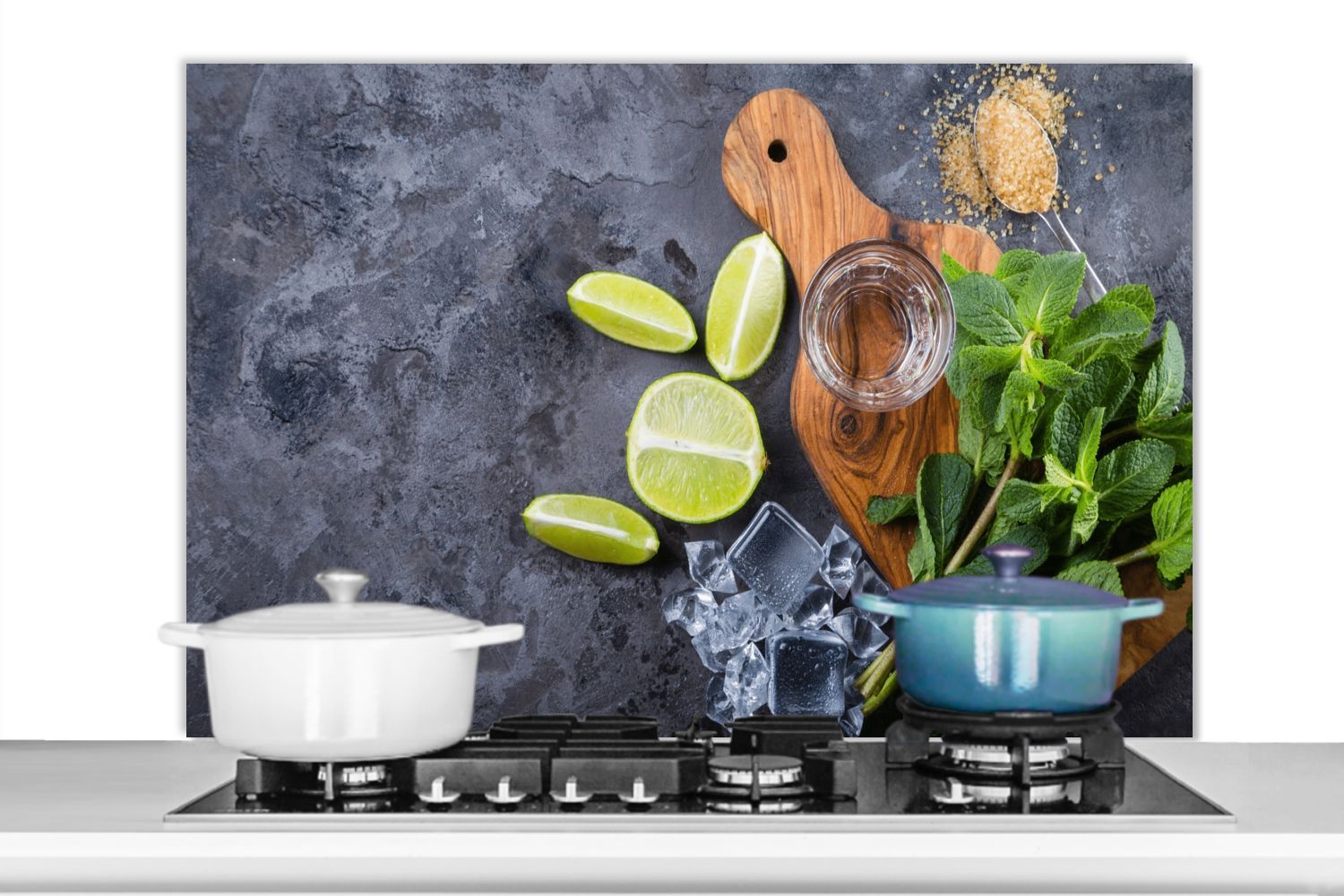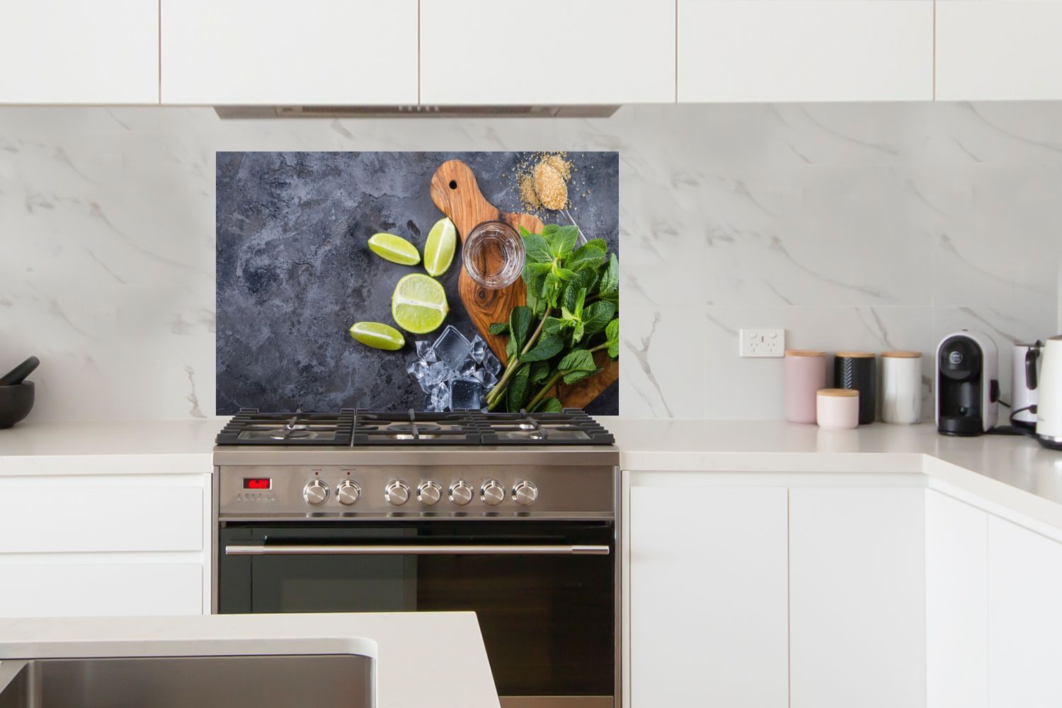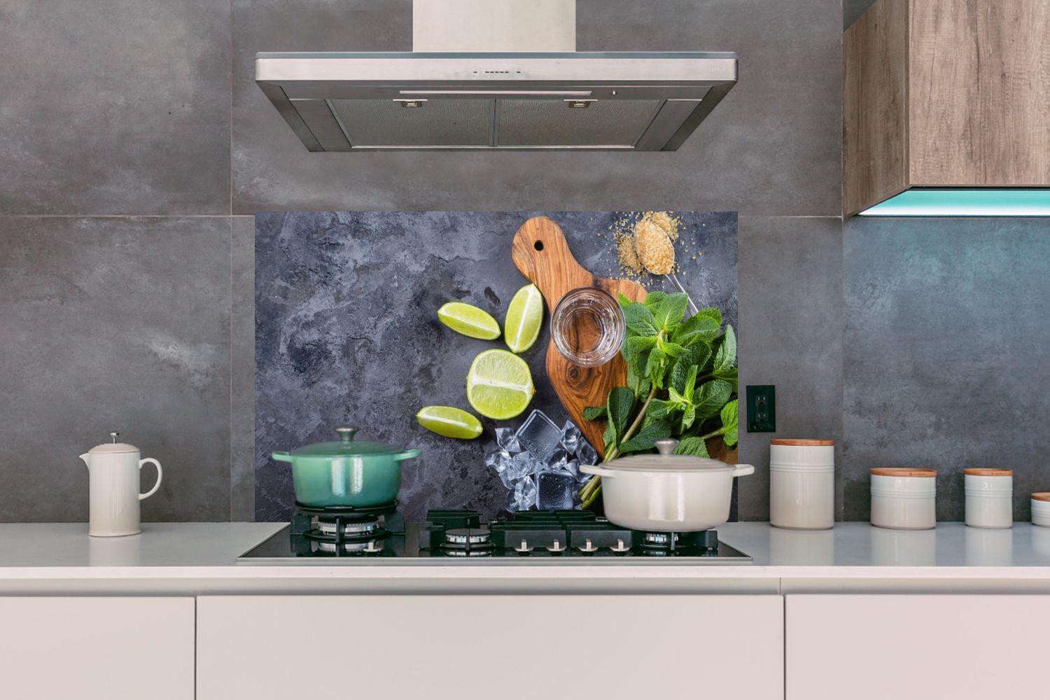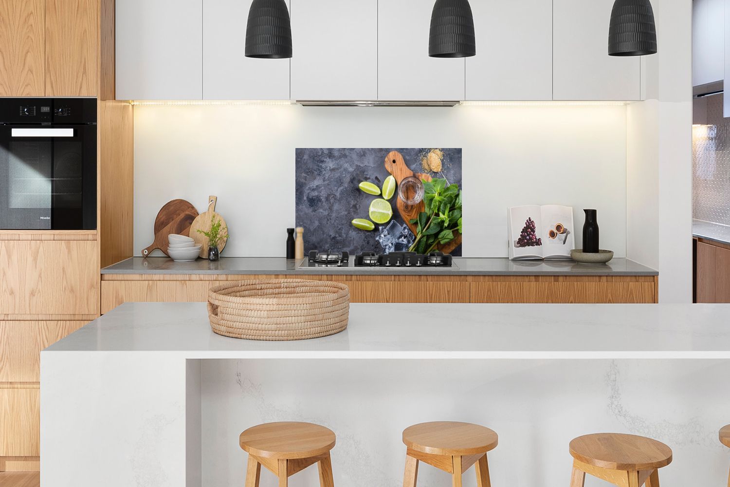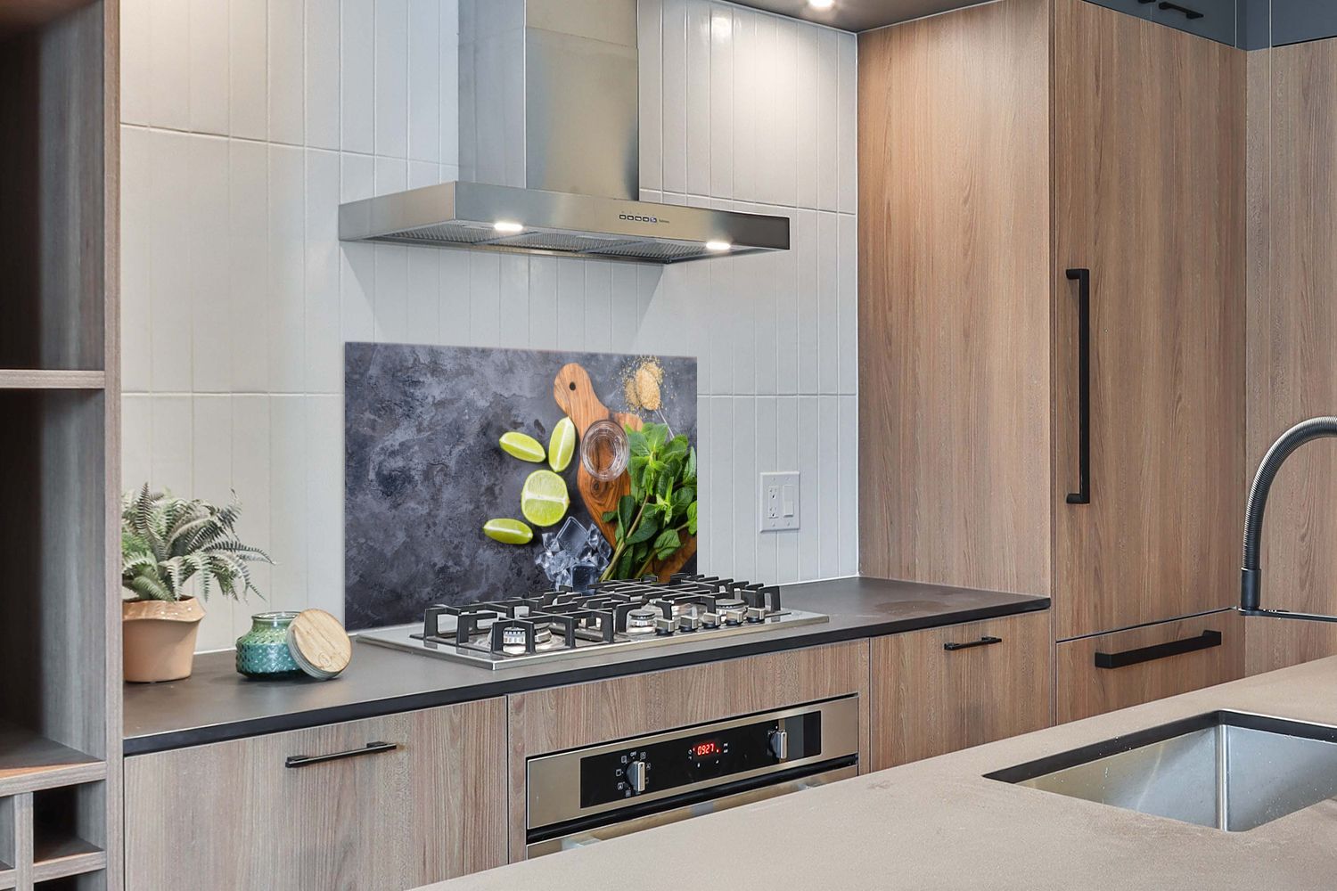 Spritzschutz Küchenrückwand - 100x65 cm Schneidebrett - Glas - Obst - Zitrone