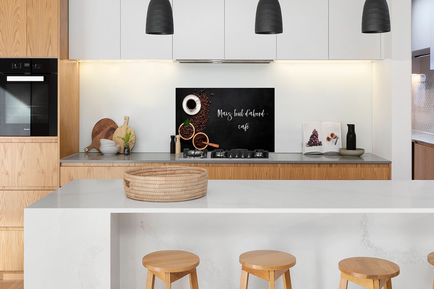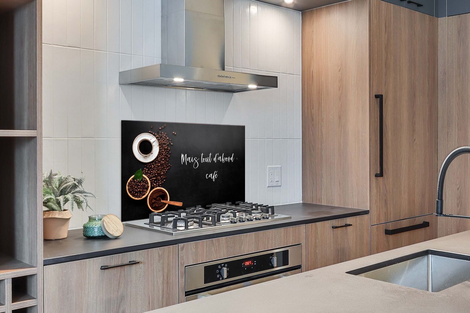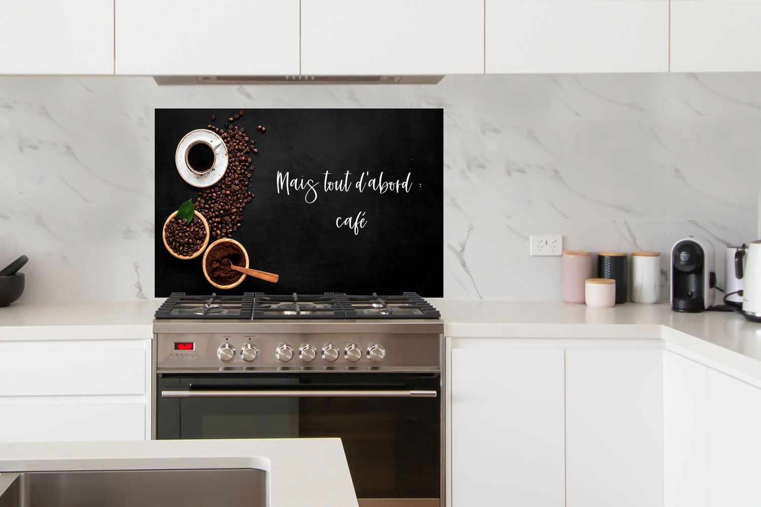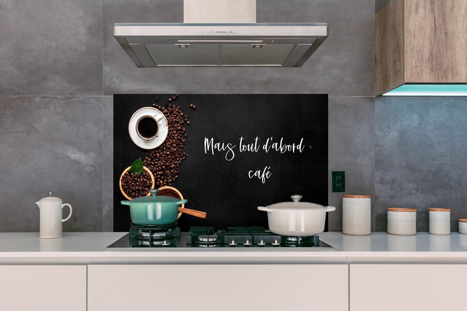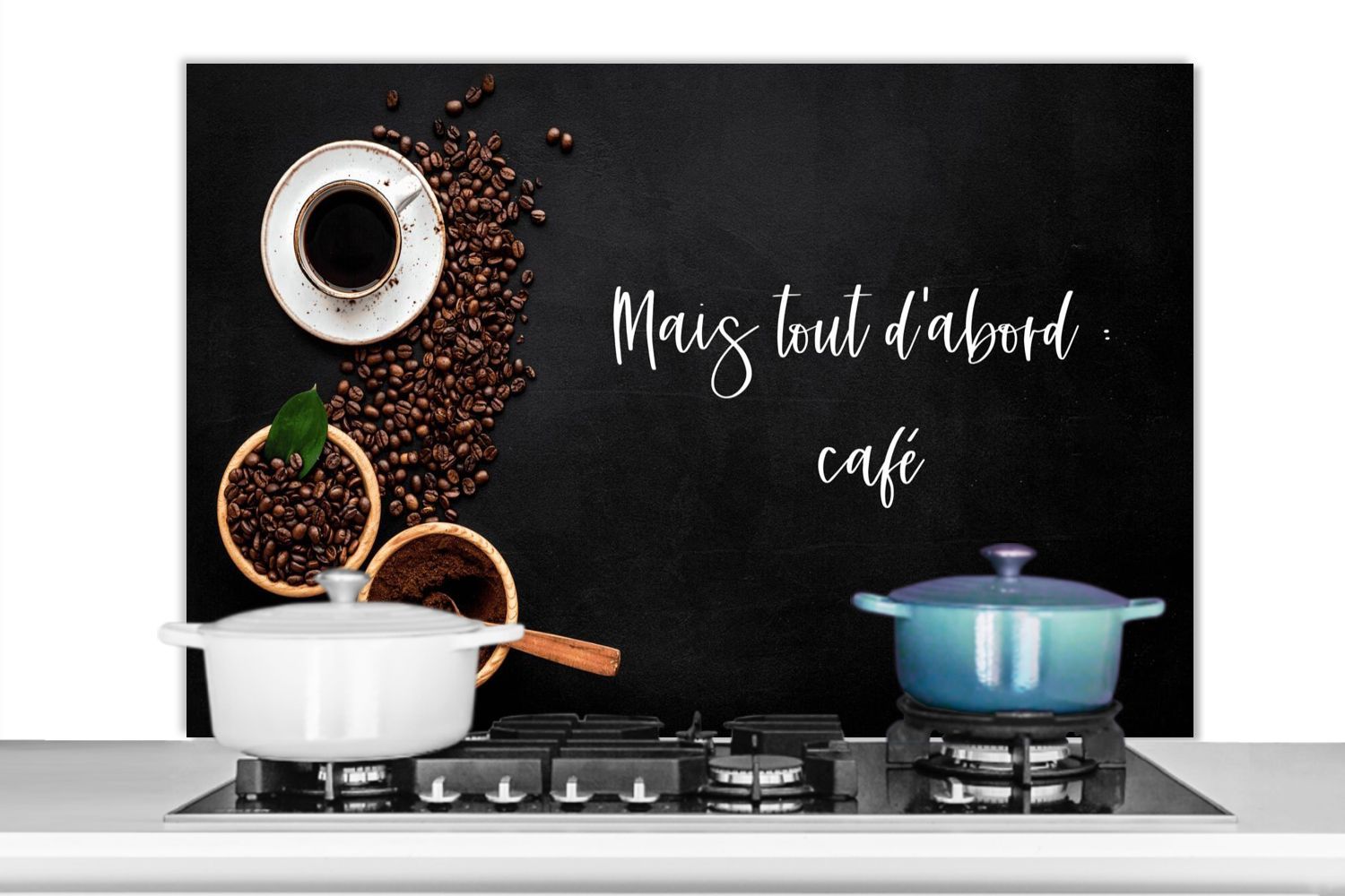 Spritzschutz Küchenrückwand - 100x65 cm Sprichwörter - Kaffee - Mais tout d'abord caf