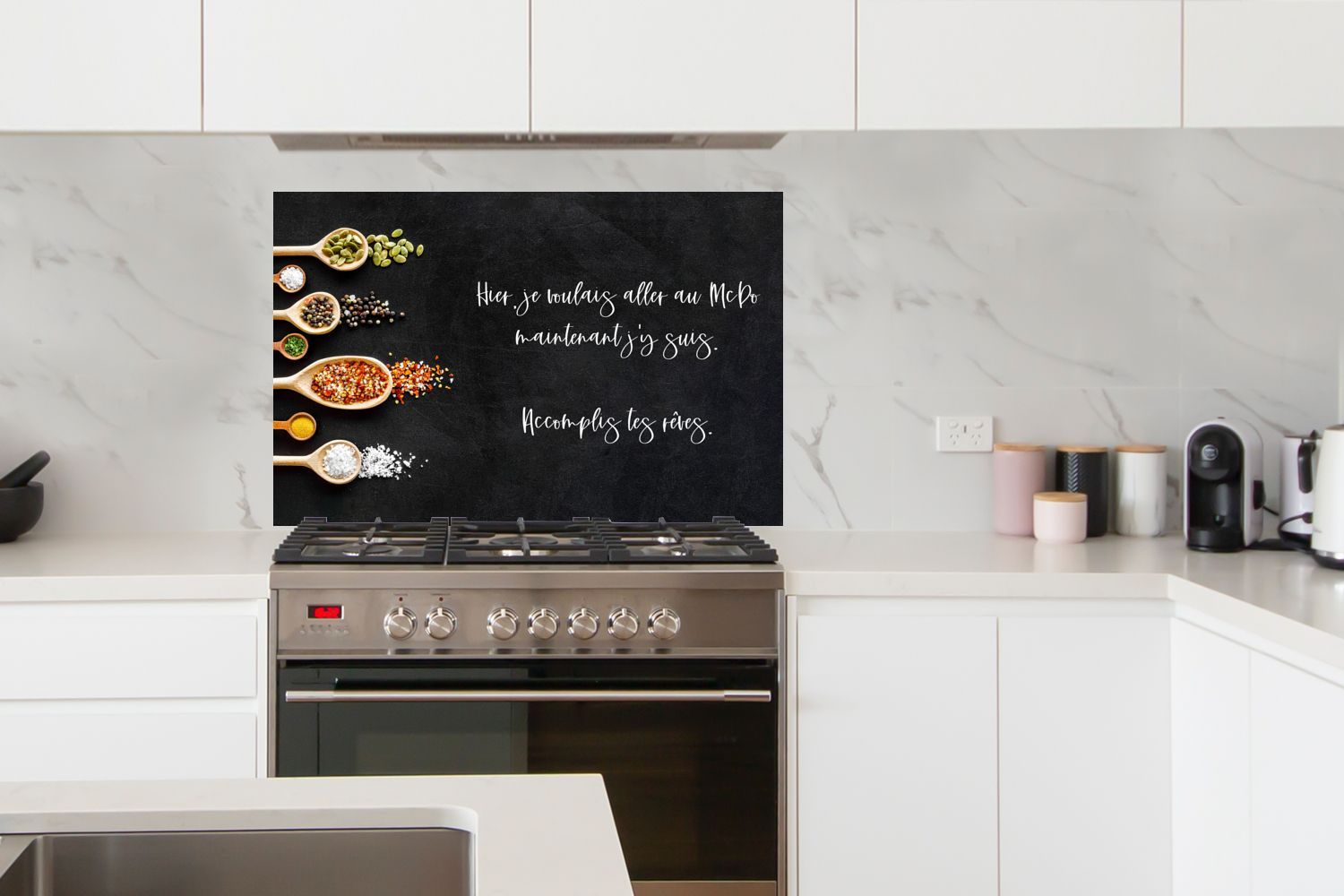 Spritzschutz Küchenrückwand - 100x65 cm Zitate - Hier, je voulais aller au McDo - Spr