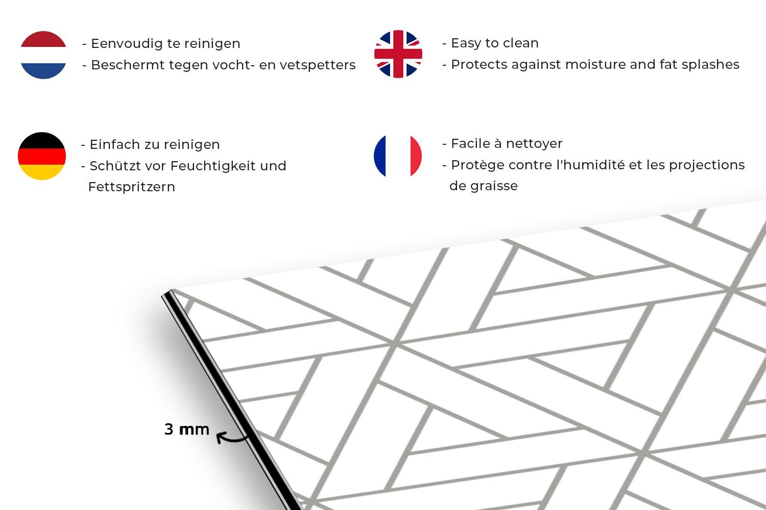 Spritzschutz Küchenrückwand - 120x80 cm Design - Linie - Muster - Schwarz - Weiß
