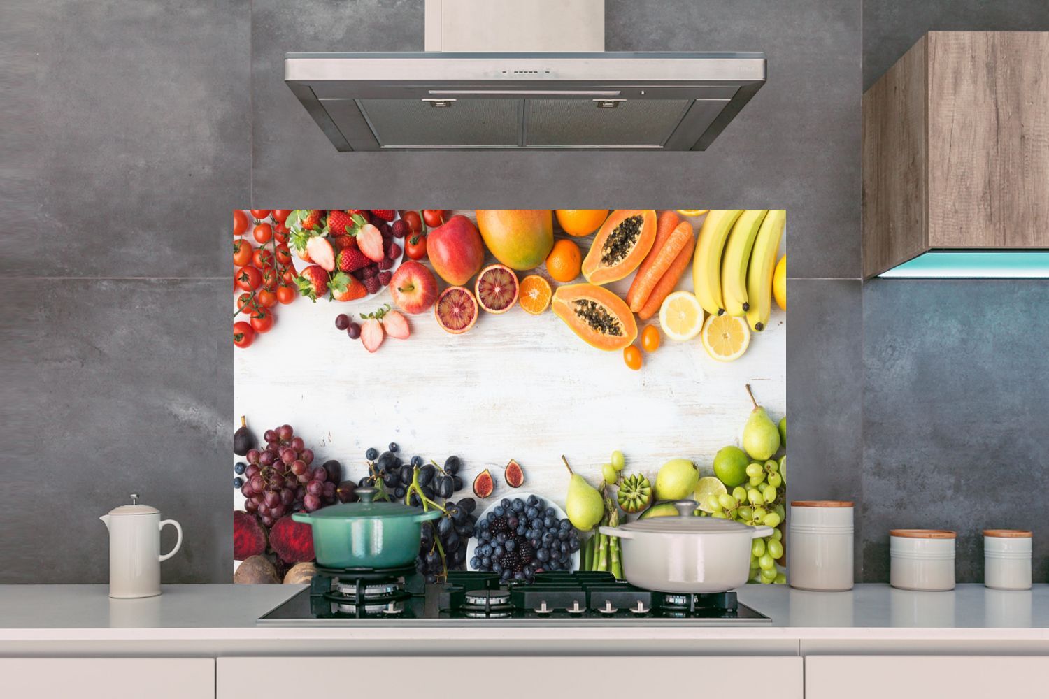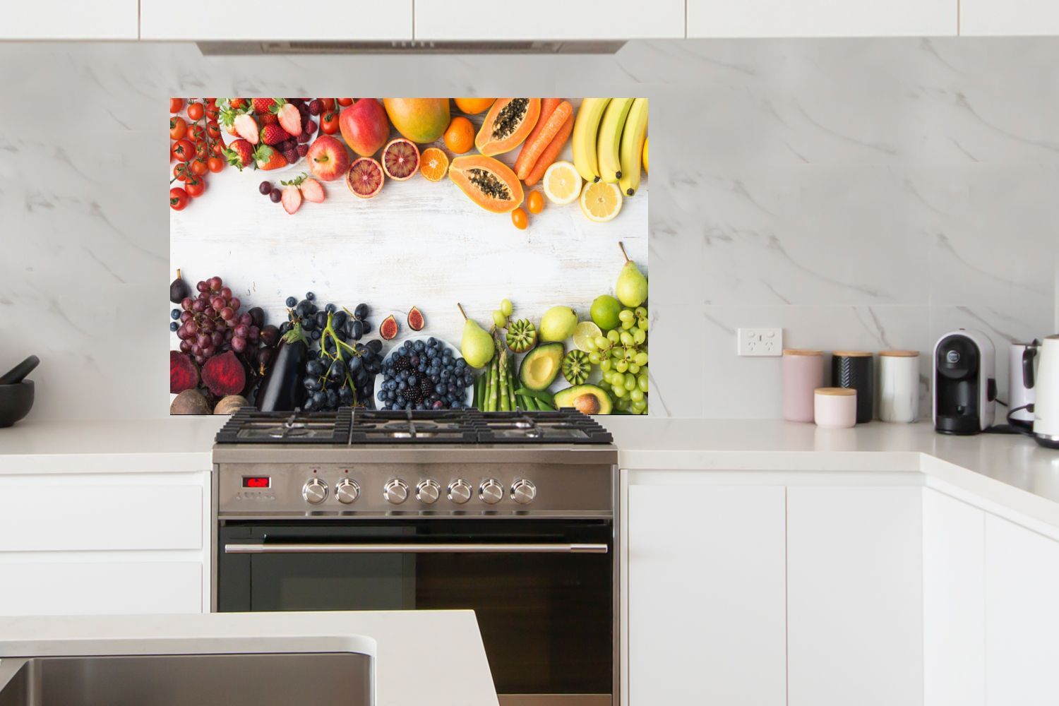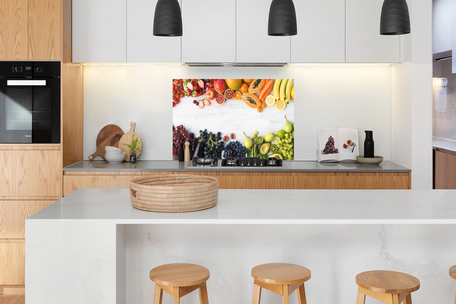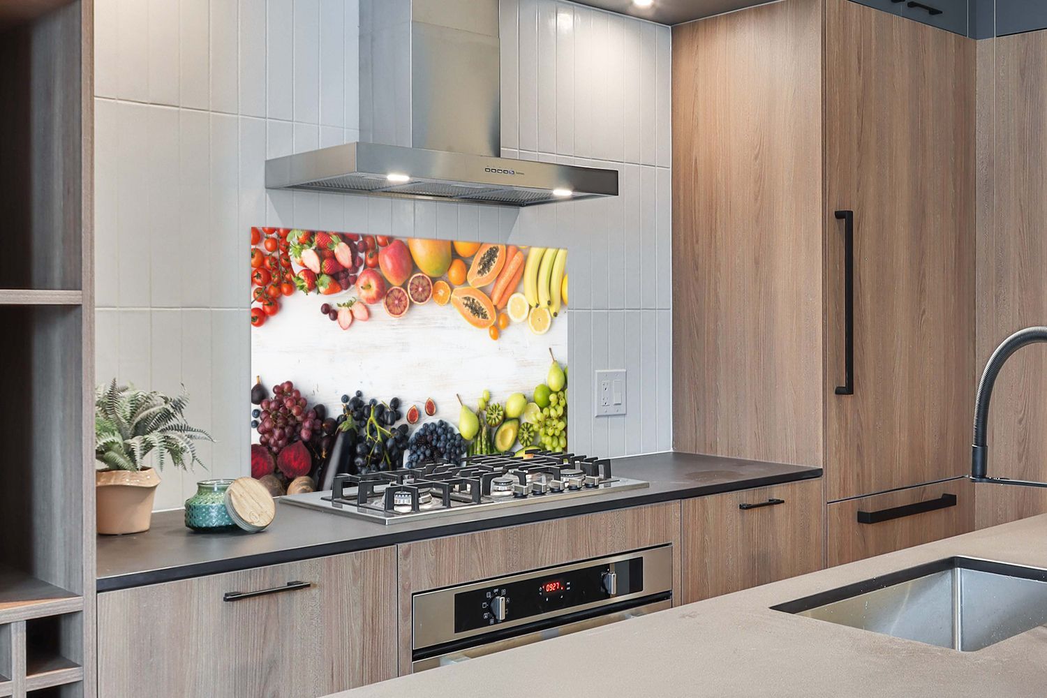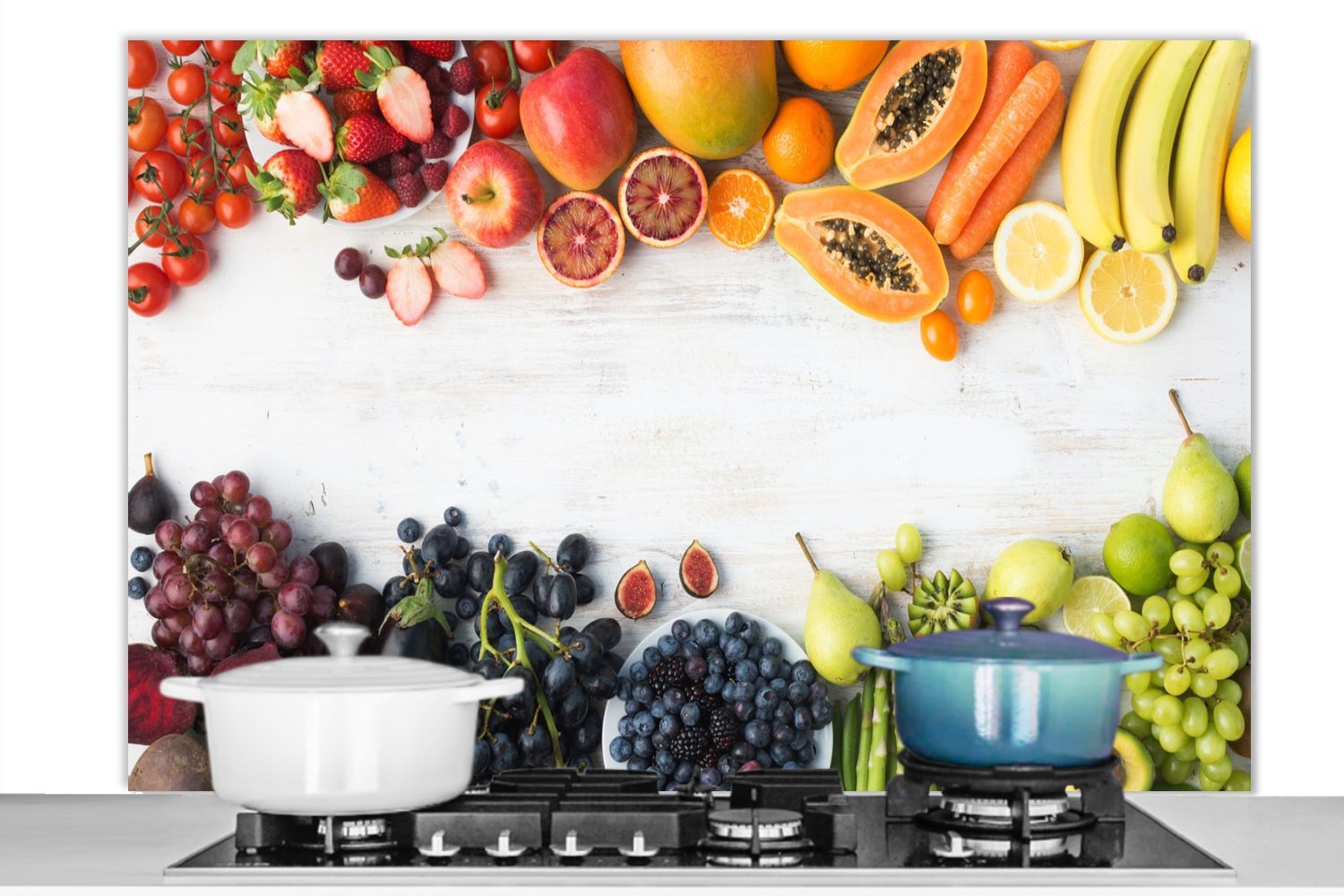 Spritzschutz Küchenrückwand - 120x80 cm Obst - Regenbogen - Erdbeere - Weintrauben -