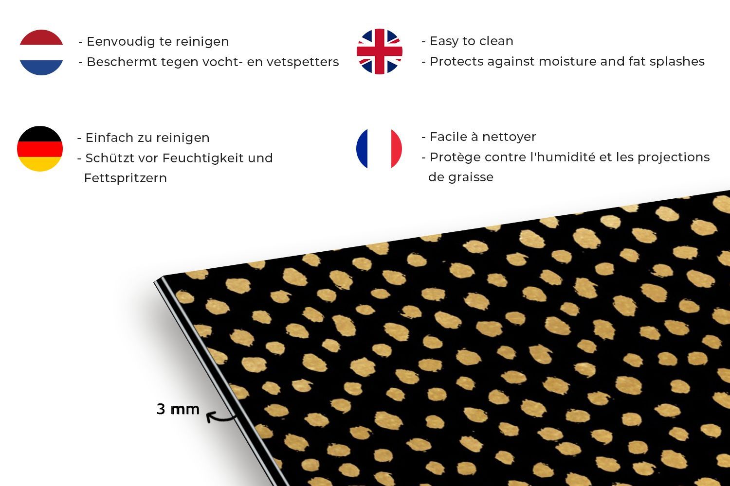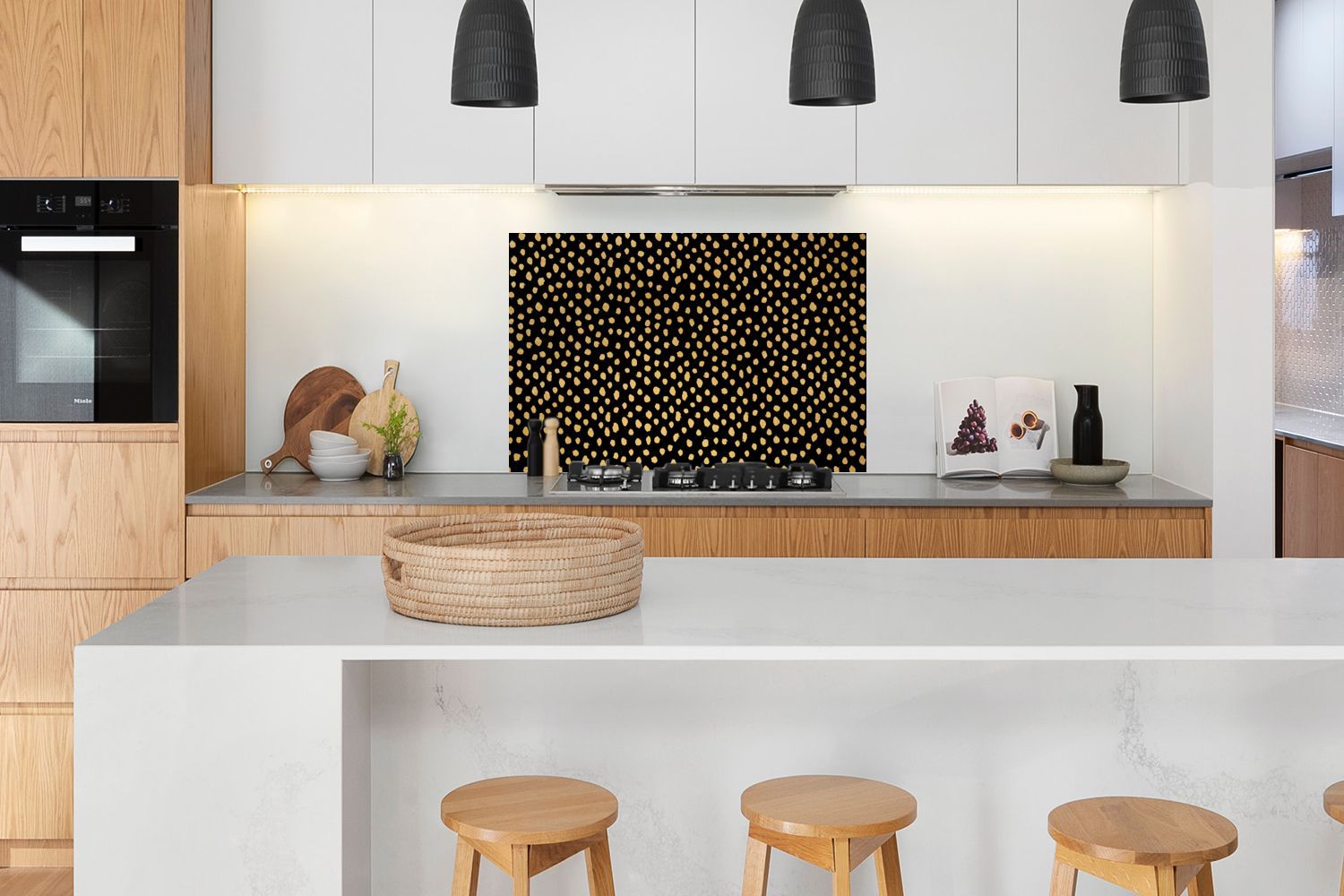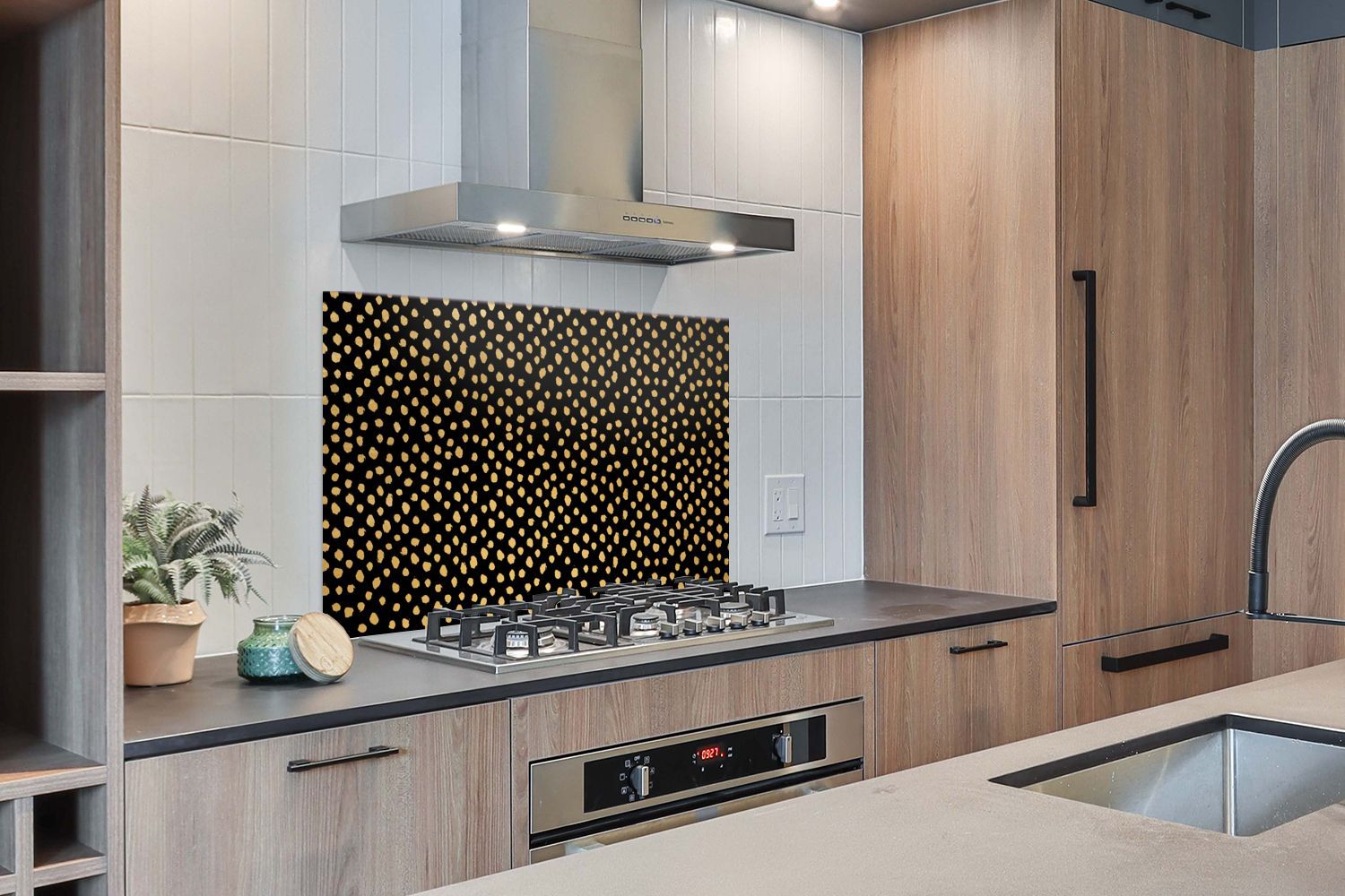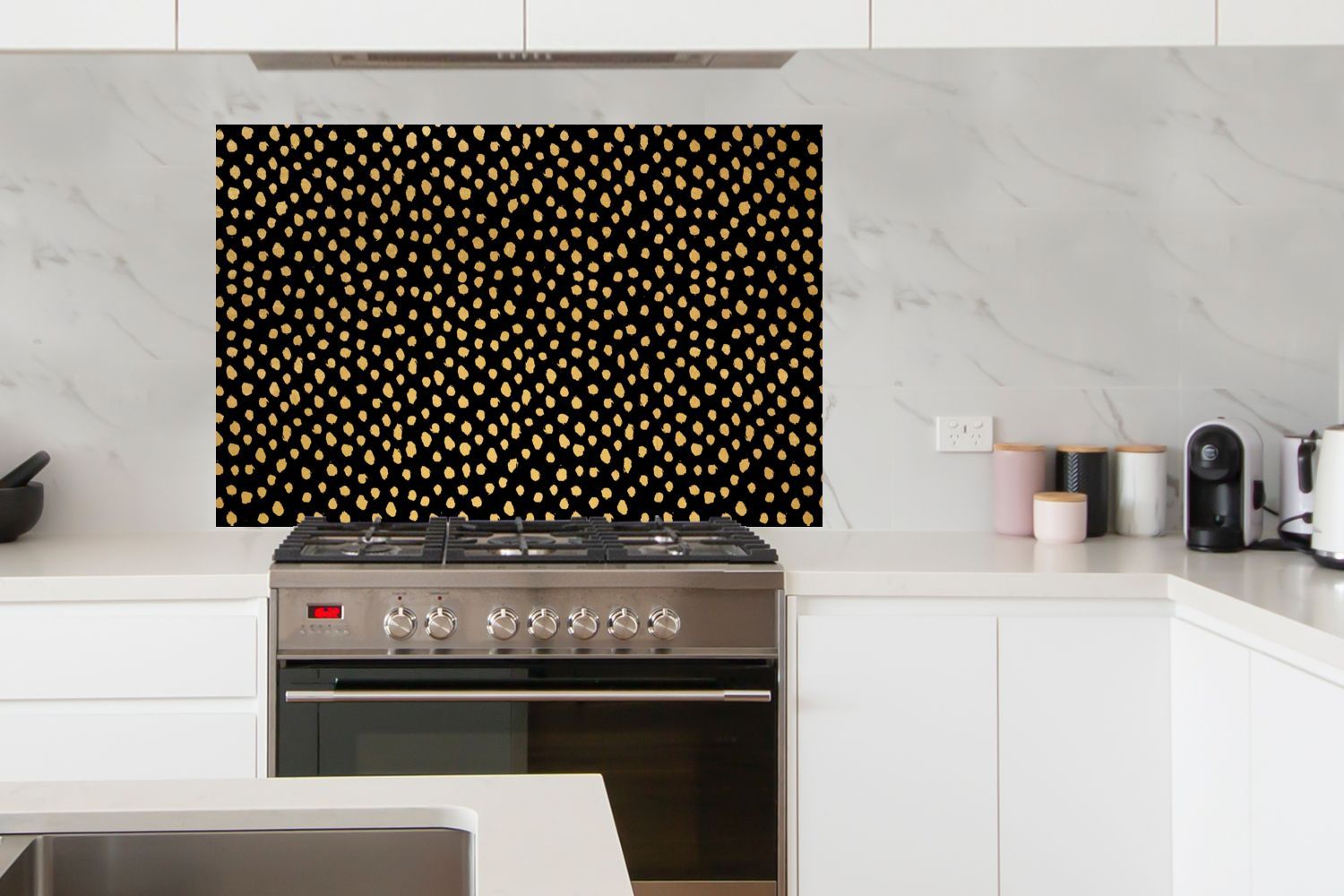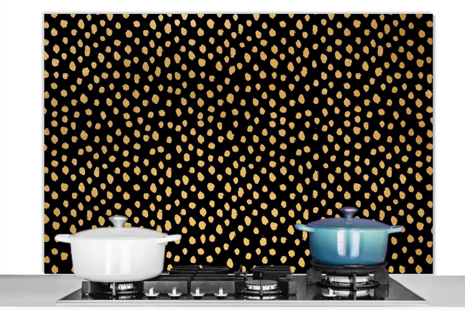 Spritzschutz Küchenrückwand - 120x80 cm Ockergelb - Schwarz - Tupfen - Muster