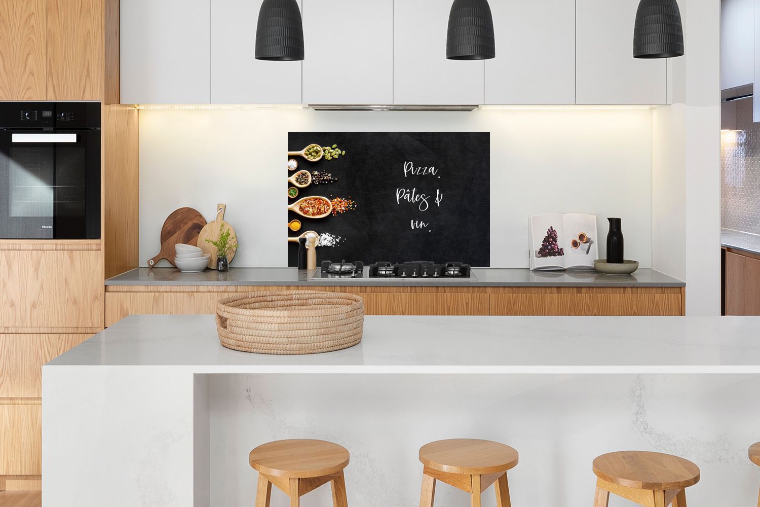 Spritzschutz Küchenrückwand - 120x80 cm Pizza, pasta & vin - Zitate - Essen - Tri
