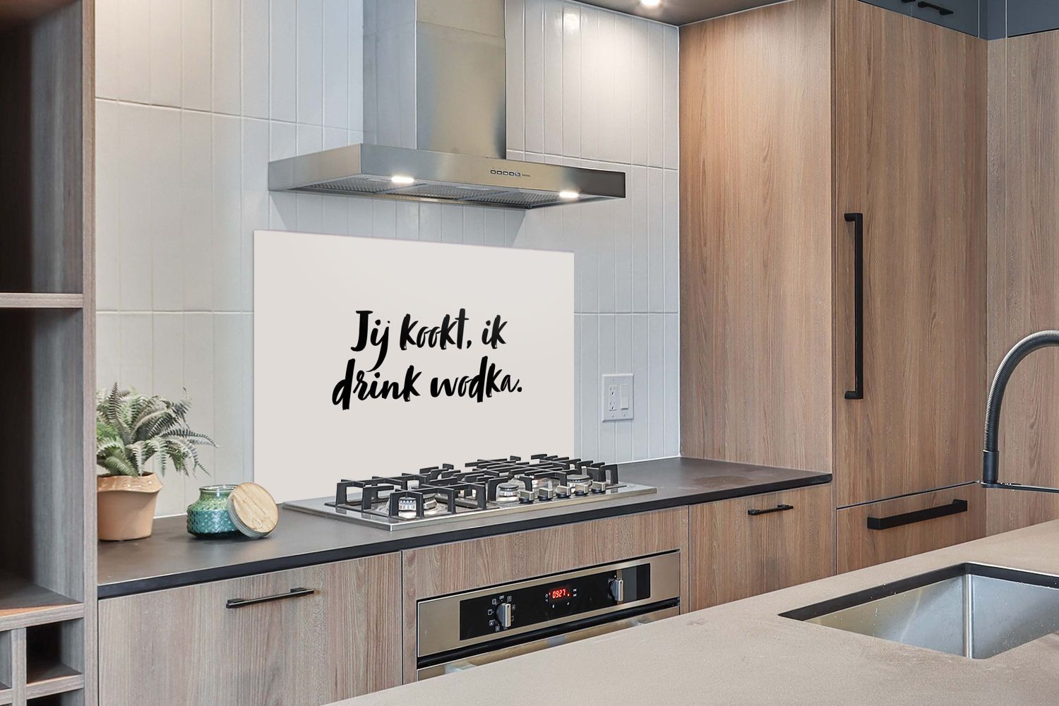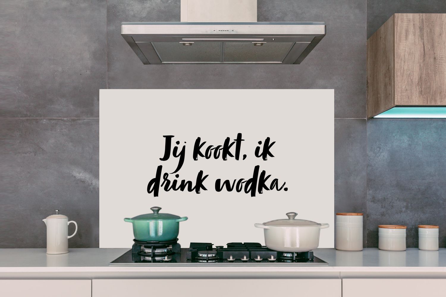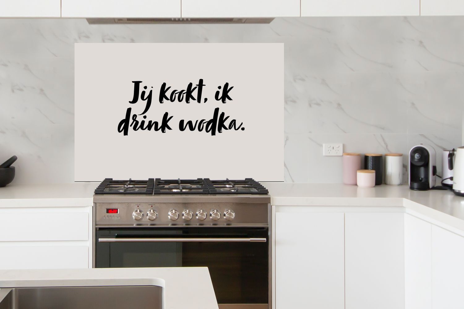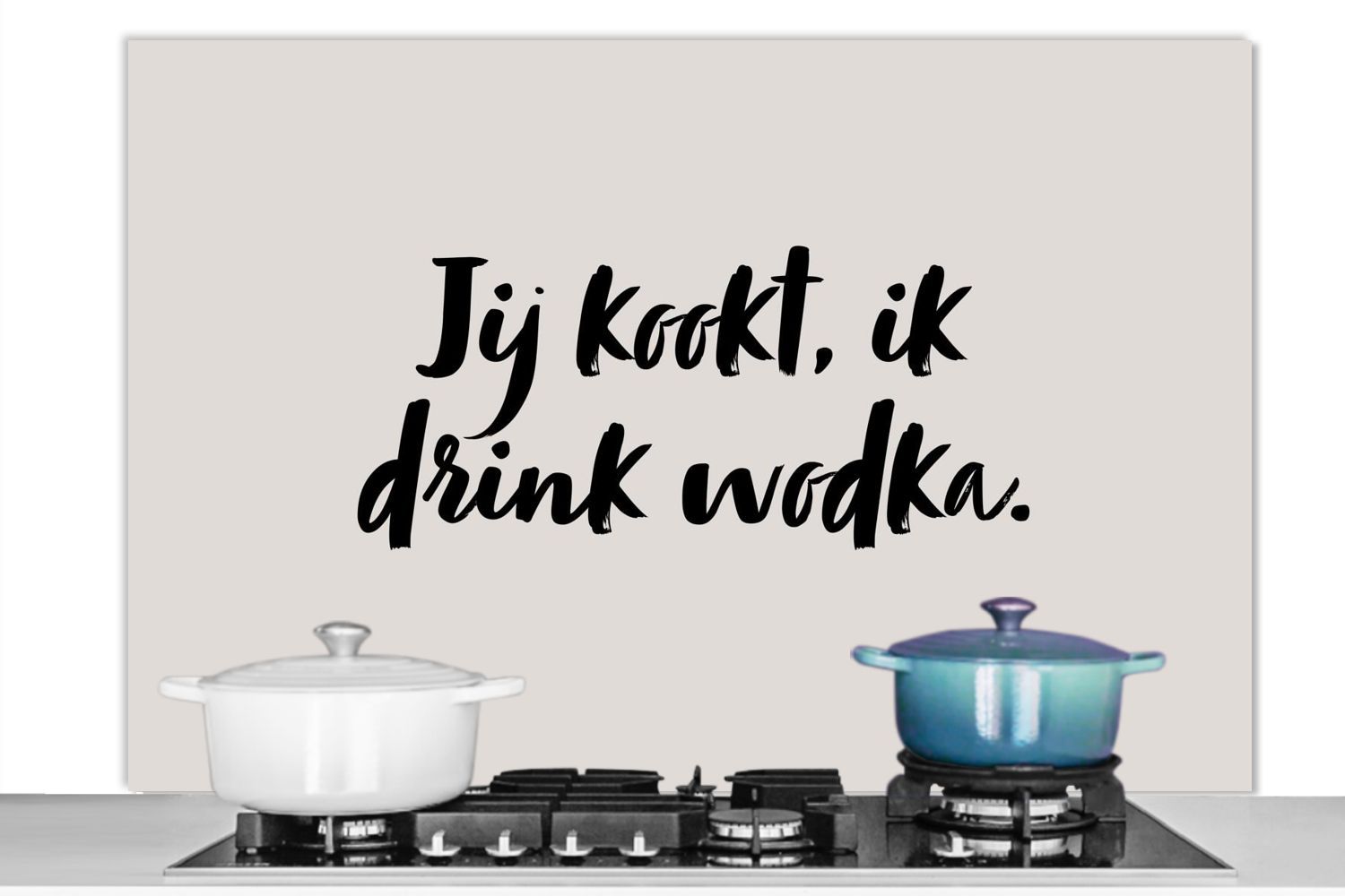 Spritzschutz Küchenrückwand - 120x80 cm Taupe - Du kochst, ich trinke Wodka - Zitat