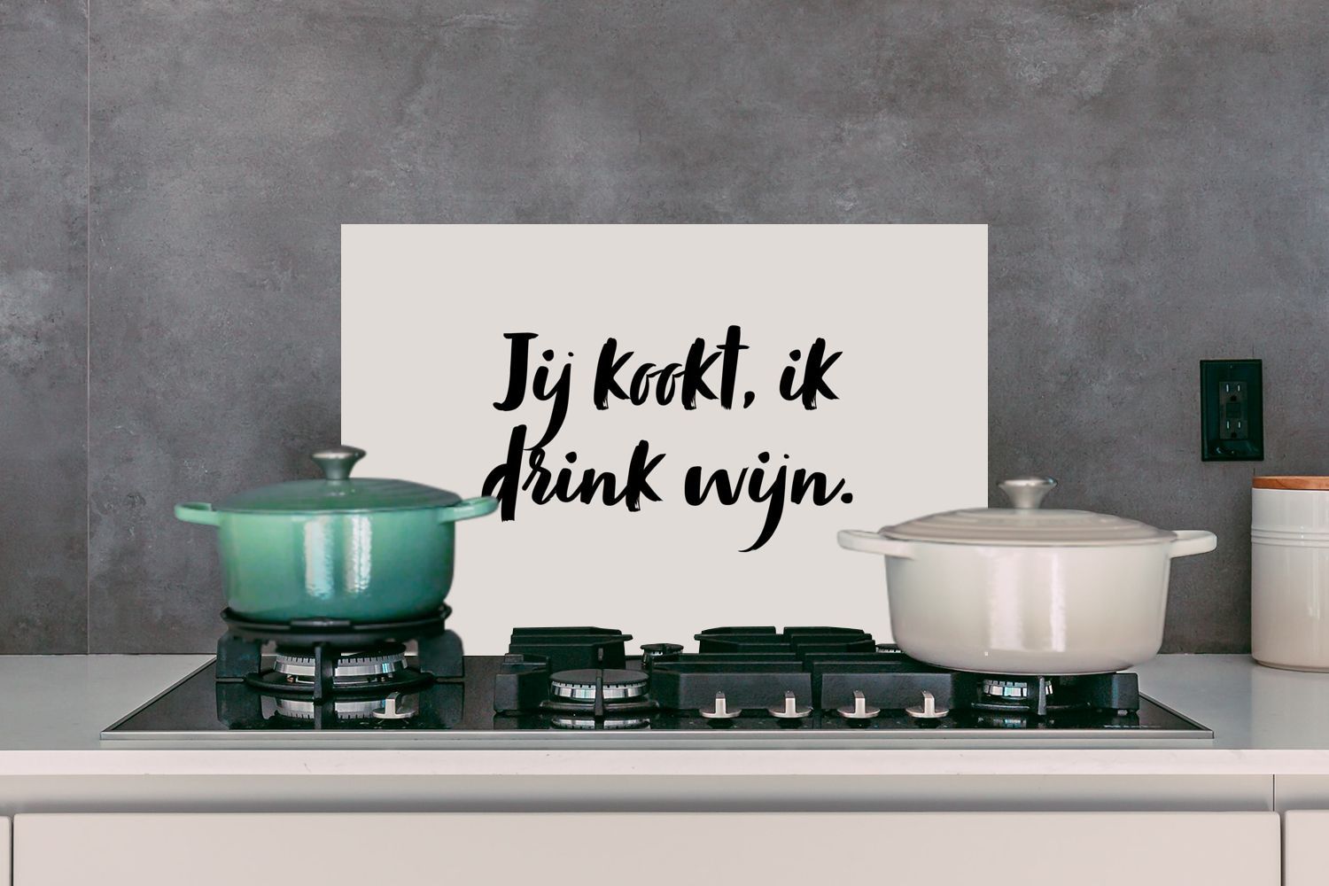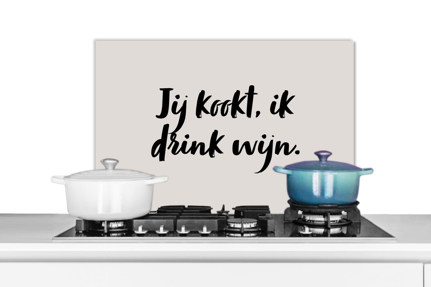 Spritzschutz Küchenrückwand - 60x40 cm Du kochst, ich trinke Wein - Taupe - Zitat