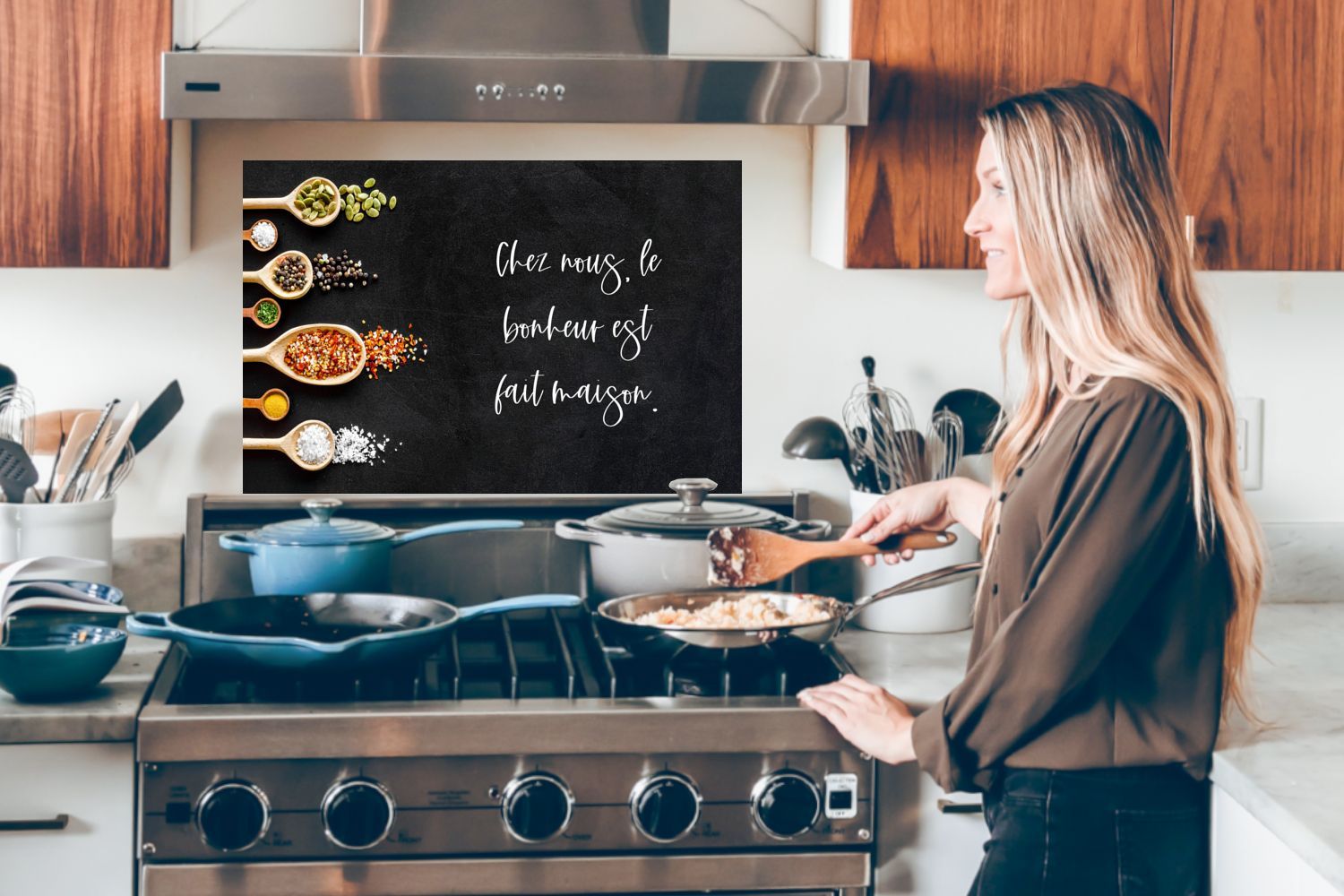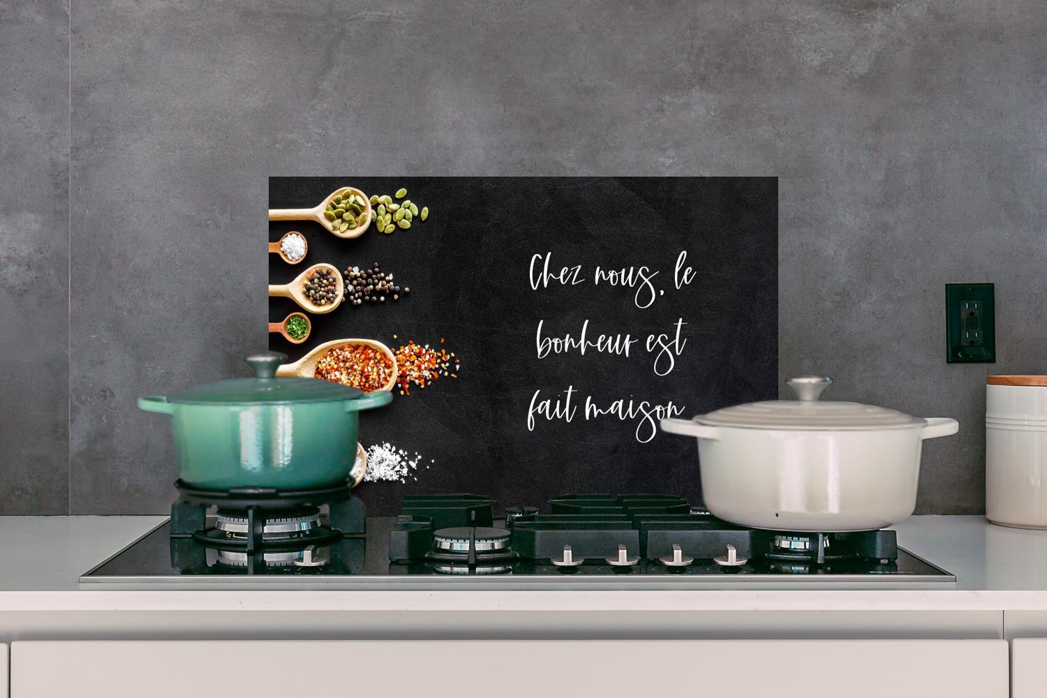 Spritzschutz Küchenrückwand - 60x40 cm Glück - Handgemacht - Chez nous, le bonheur es