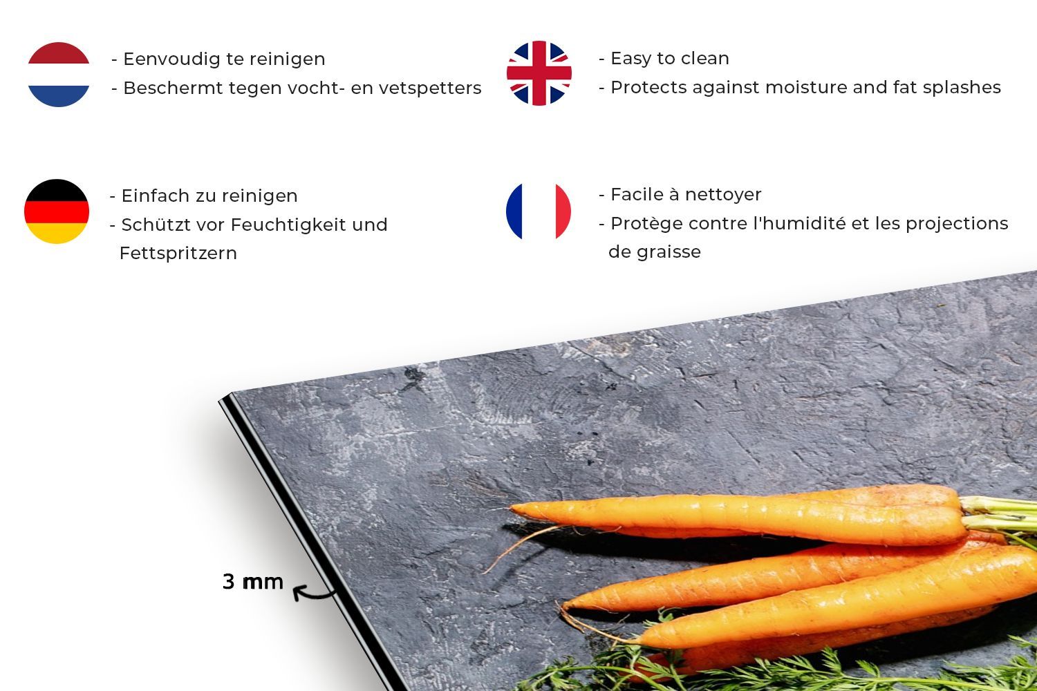 Spritzschutz Küchenrückwand - 60x40 cm Karotte - Gemüse - Marmor - Industrie