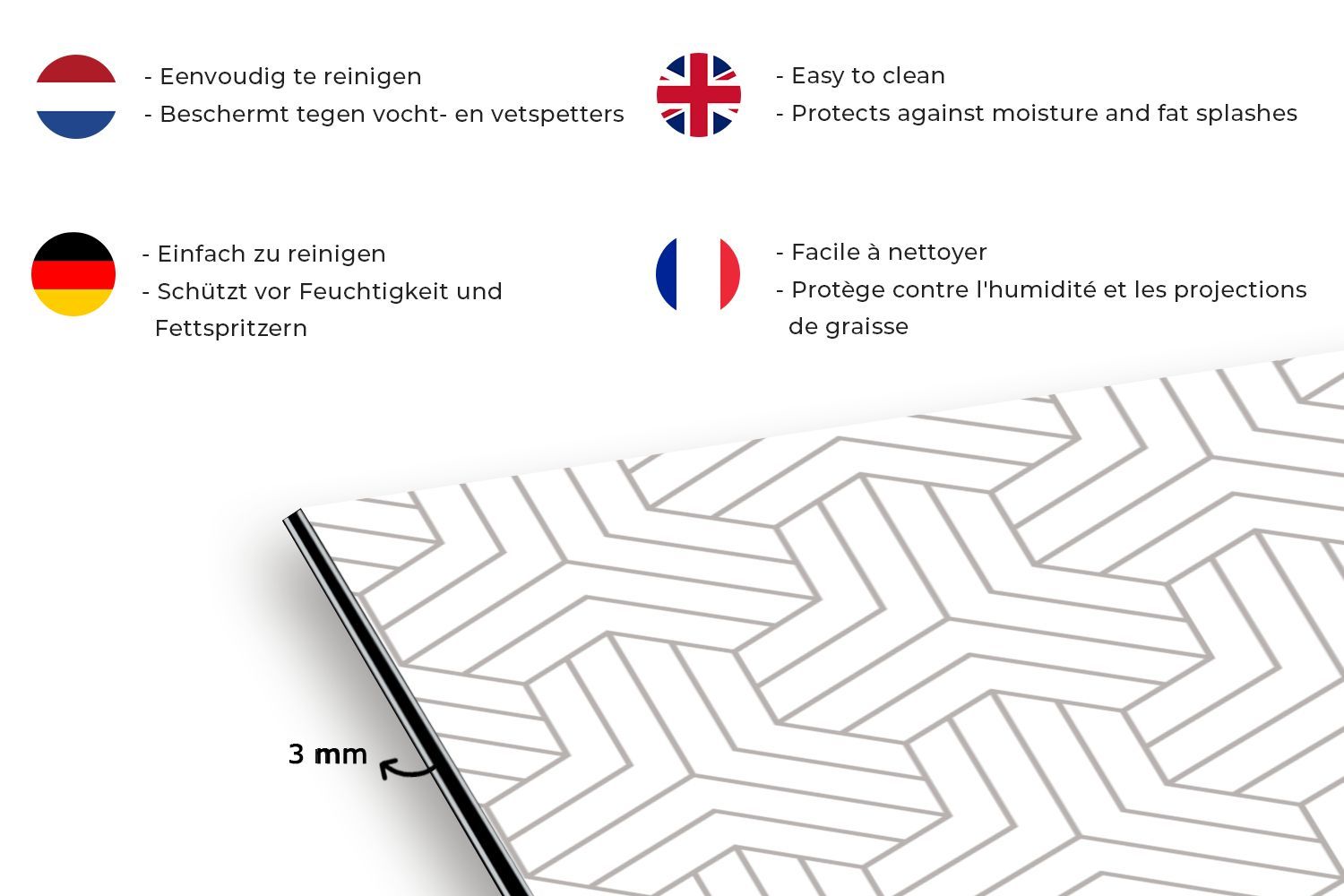 Spritzschutz Küchenrückwand - 70x35 cm Muster - Abstrakt - Schwarz - Weiß - Geometrie