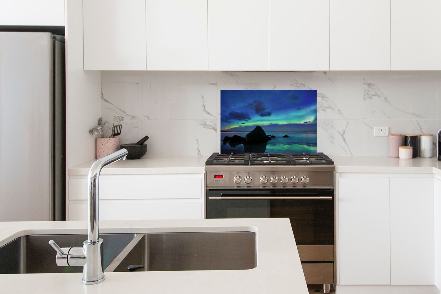 Spritzschutz Küchenrückwand - 70x50 cm Himmel - Landschaft - Polarlicht