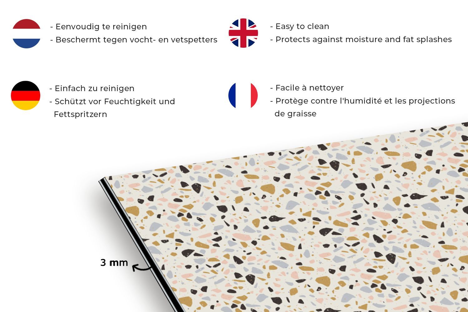Spritzschutz Küchenrückwand - 70x50 cm Lehm - Muster - Terazzo (Gr. 70x50 cm)