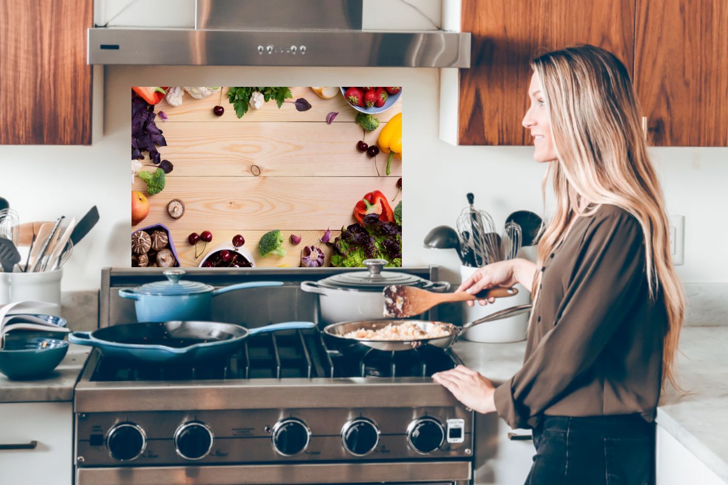 Spritzschutz Küchenrückwand - 70x50 cm Obst - Erdbeere - Paprika - Küche