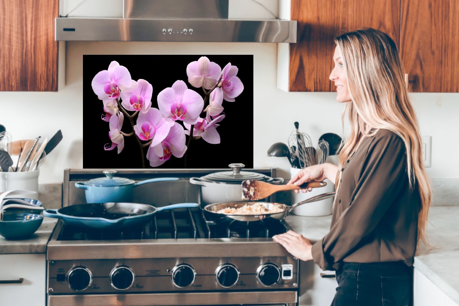 Spritzschutz Küchenrückwand - 70x50 cm Orchideenpflanze - Blume - Rosa (Gr. 70x50 cm)
