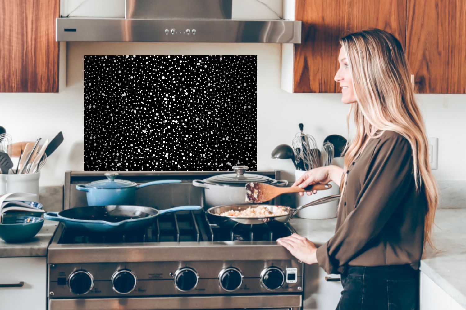Spritzschutz Küchenrückwand - 70x50 cm Schwarz - Weiß - Muster - Polka dots