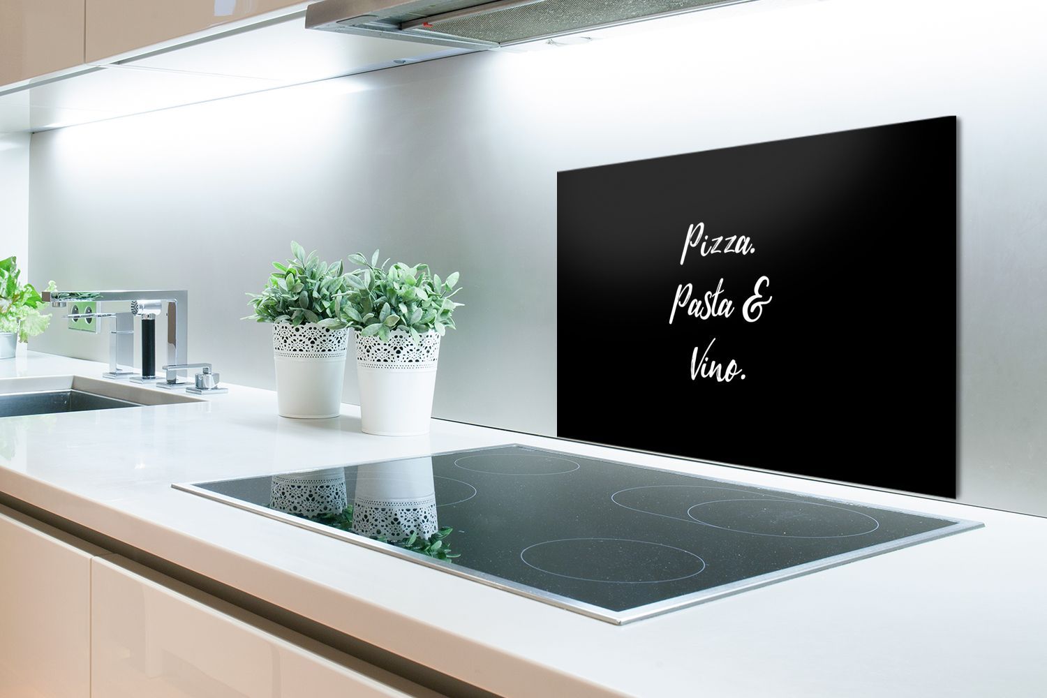 Spritzschutz Küchenrückwand - 70x50 cm Sprichwörter - Zitate - Pizza. Pasta und Wein.