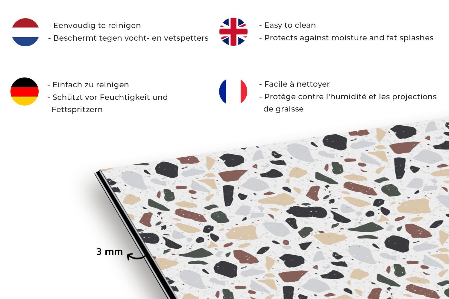 Spritzschutz Küchenrückwand - 70x50 cm Textur - Terazzo - Muster (Gr. 70x50 cm)
