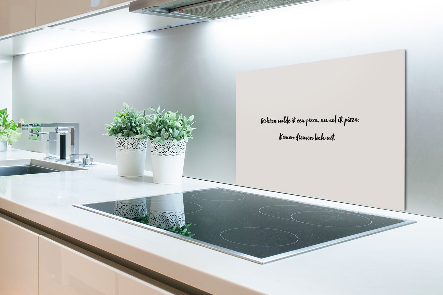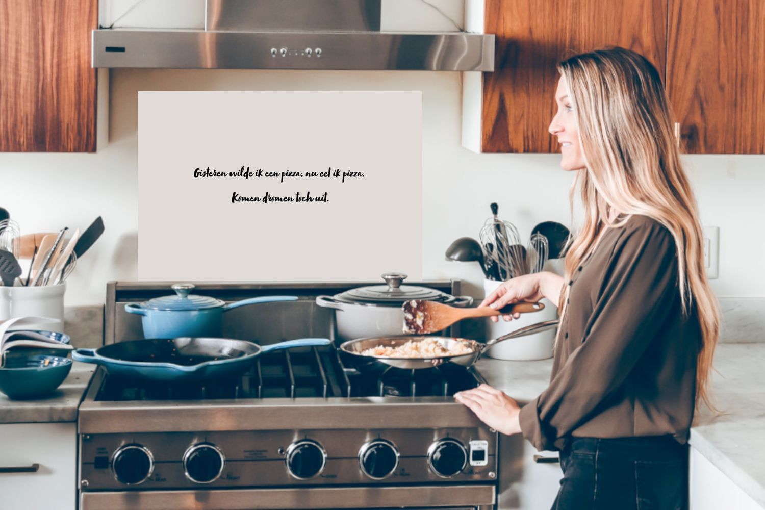 Spritzschutz Küchenrückwand - 70x50 cm Zitat - Taupe - Gestern wollte ich eine Pizza